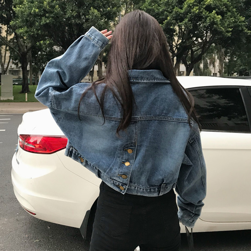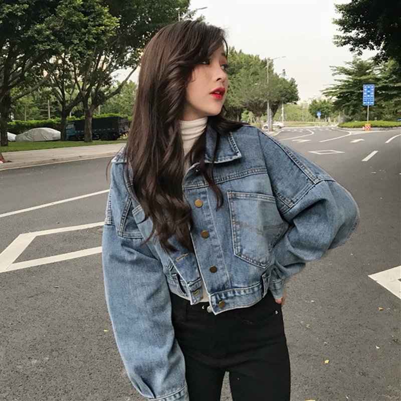/ 牛仔短夾克秋裝女新款復古港風寬松蝙蝠袖外套學生時尚帥氣上衣潮