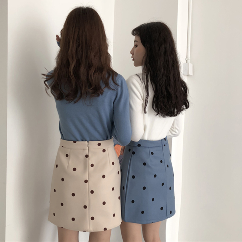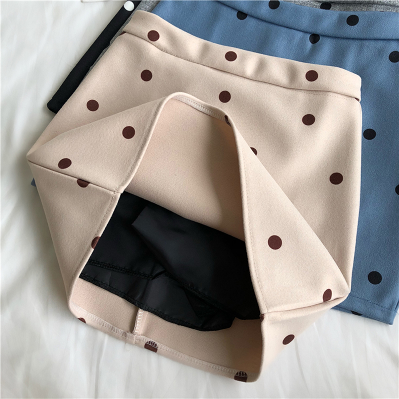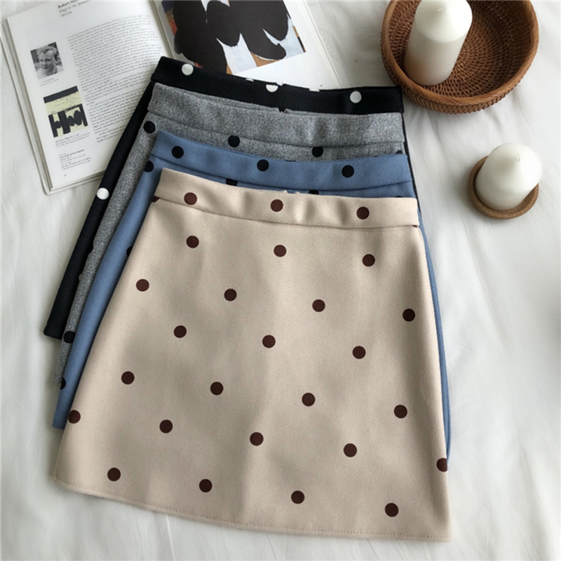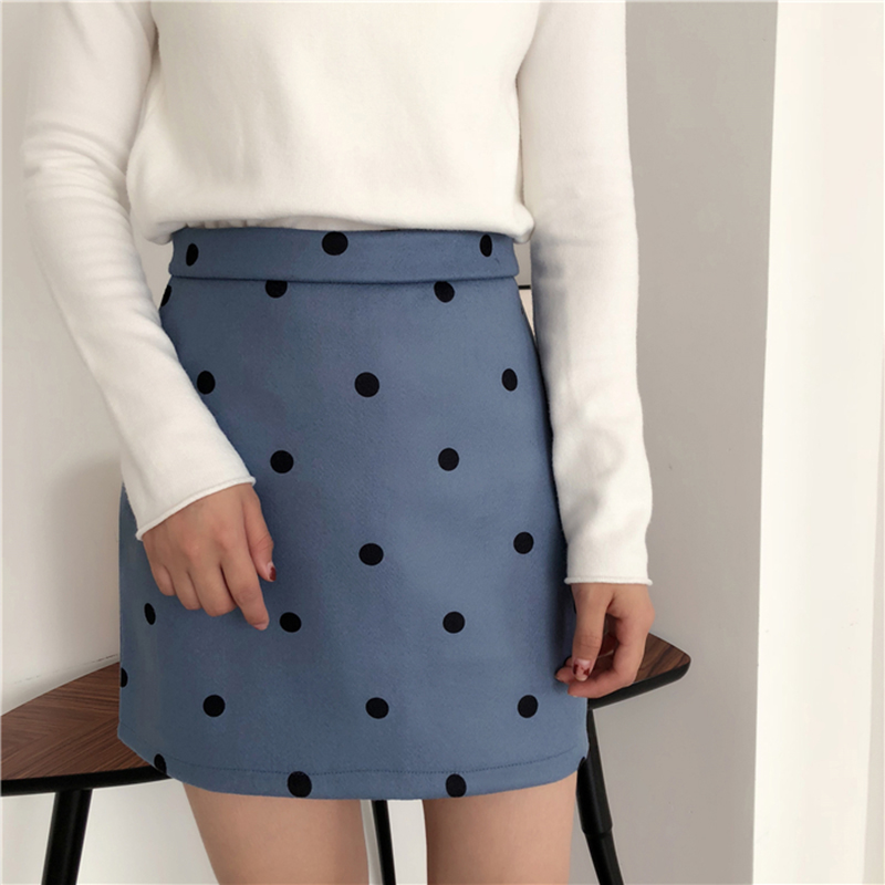 / 時尚波點毛呢半身短裙女秋冬裝2018新款韓版高腰顯瘦A字包臀裙子