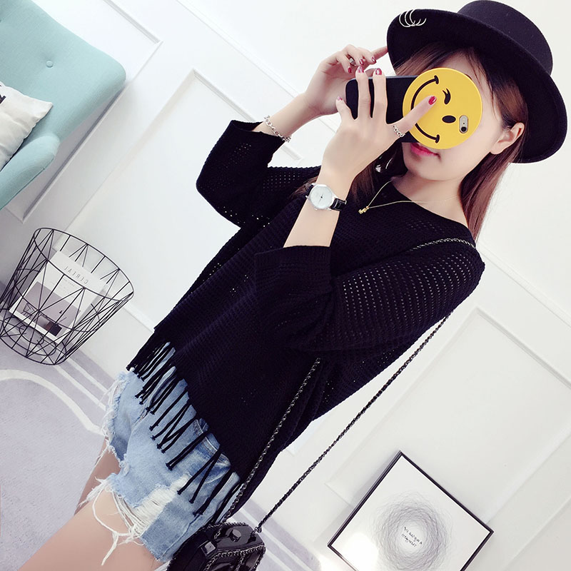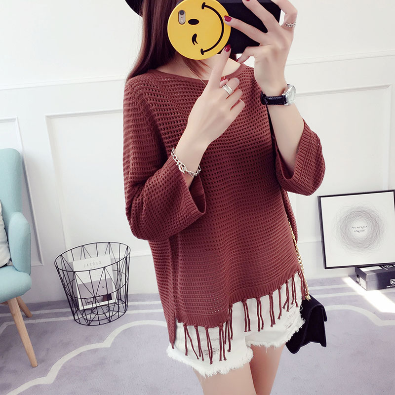 / 毛衣女套頭寬松韓版春秋新款鏤空針織衫打底衫短款薄外套夏季