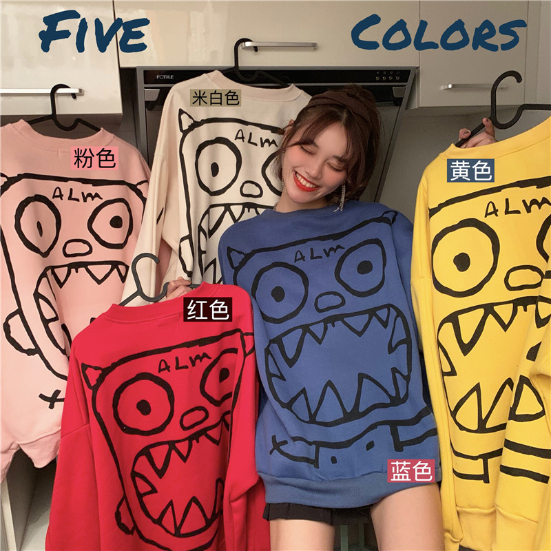 / 秋冬女裝新款卡通印花加絨長袖保暖衛衣韓版chic學生寬松慵懶上衣