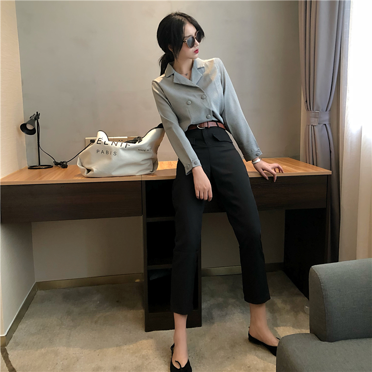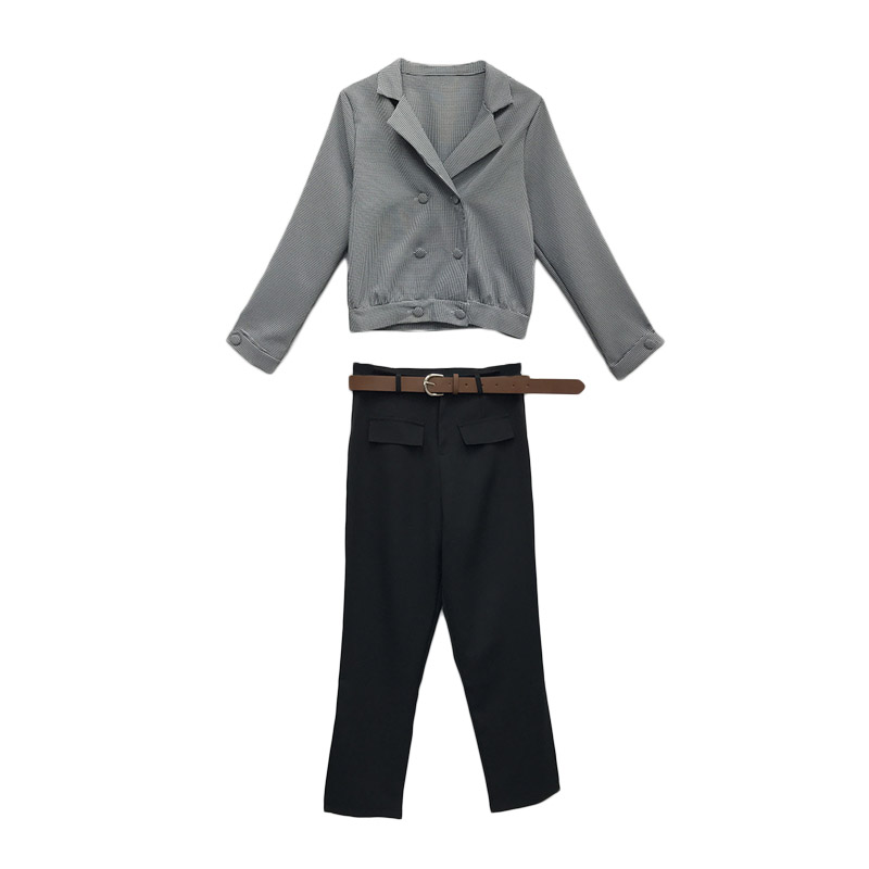 / 套裝女2018新款復古翻領格子小西裝外套+休閑褲(配皮帶)分開拍