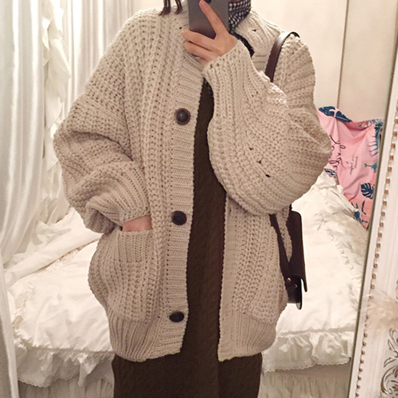 / 保暖長袖毛衣外套秋裝女2018新款單排扣針織開衫學生休閑寬松上衣