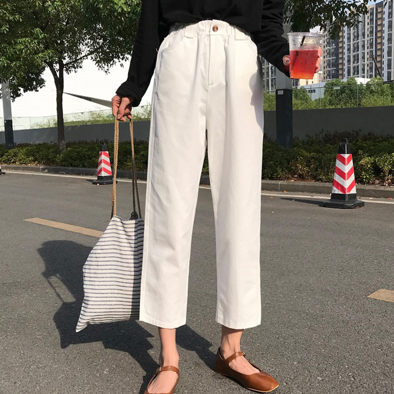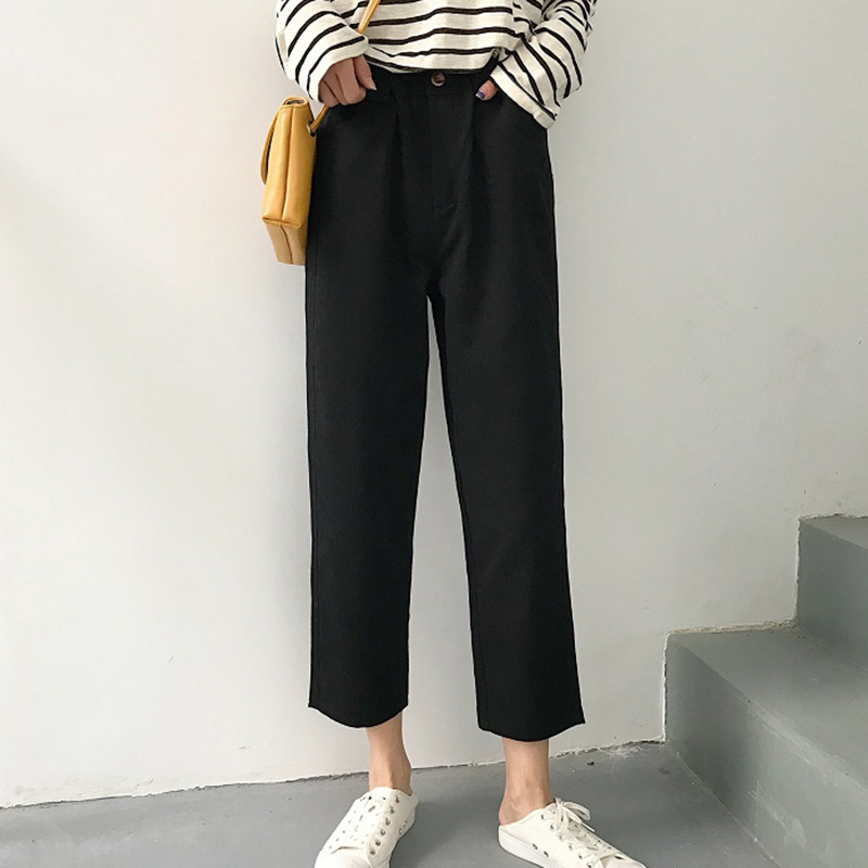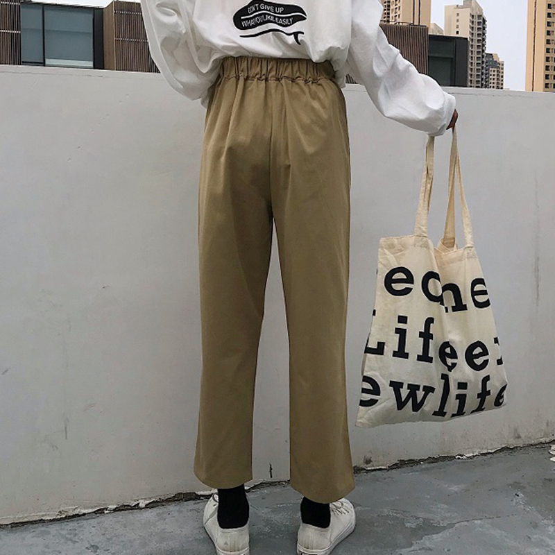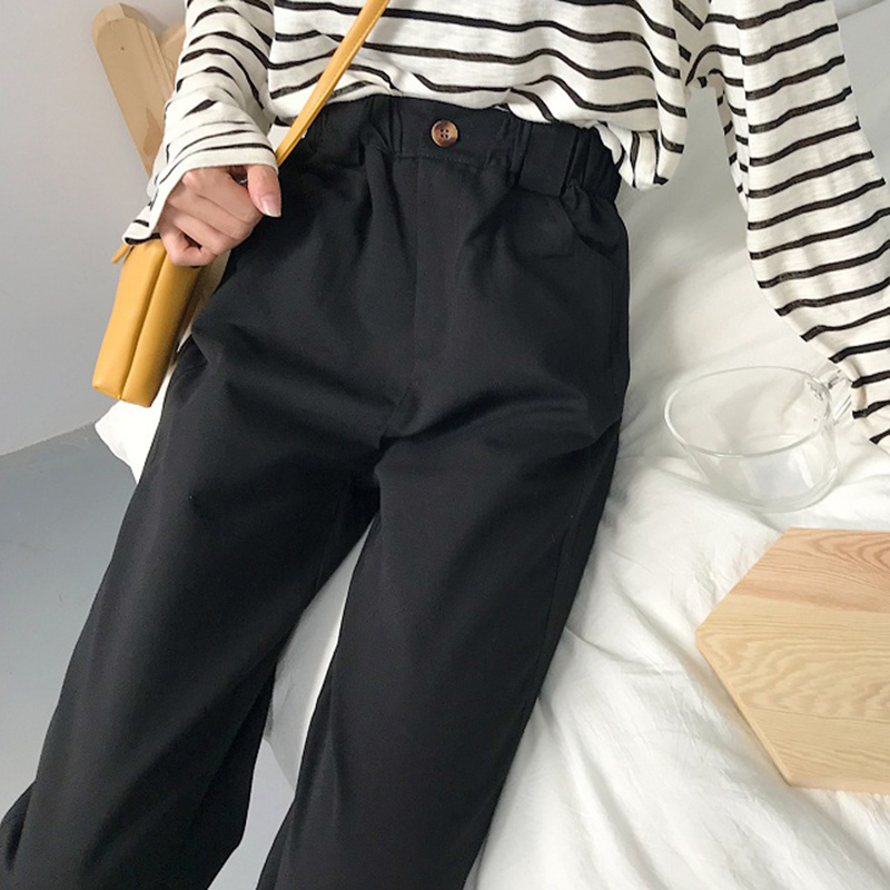 / 秋裝新款女裝韓版寬松百搭松緊腰直筒休閑褲高腰顯瘦九分闊腿褲潮