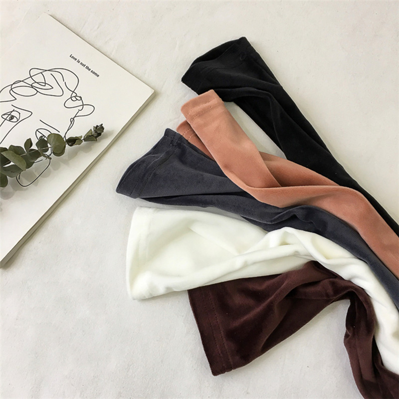/ 糖果色高領絲絨字母T恤秋裝女2018新款修身顯瘦氣質長袖打底上衣