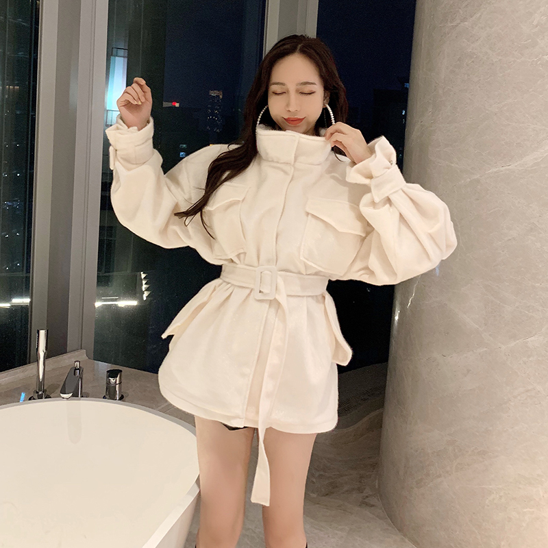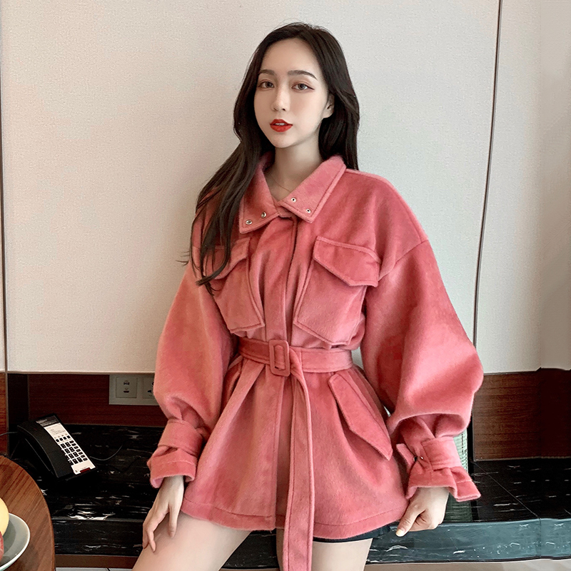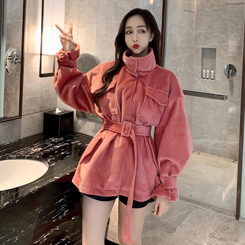 秋冬女裝新款收腰花苞袖呢子上衣2018流行學生時尚立領毛呢外套女