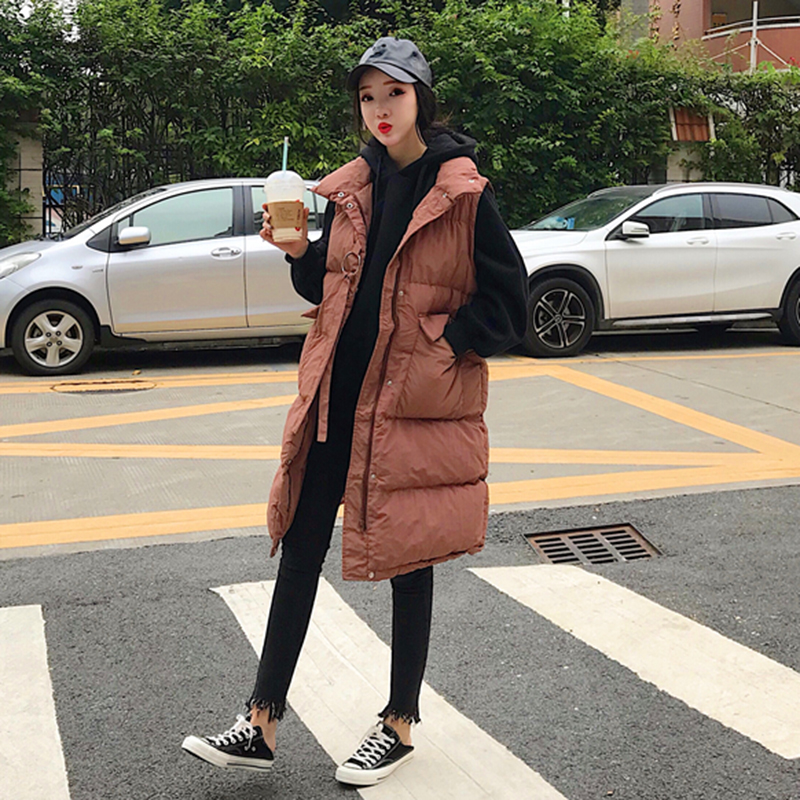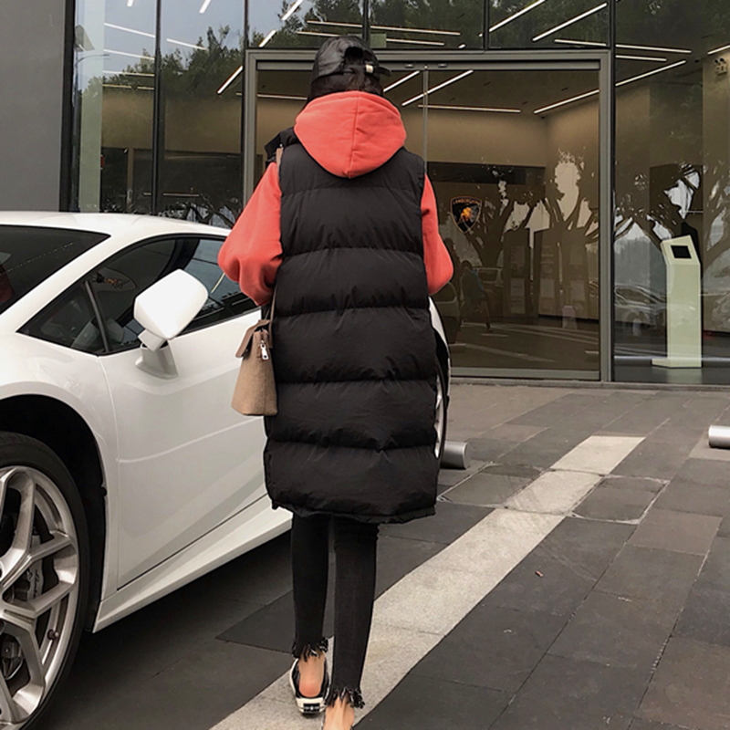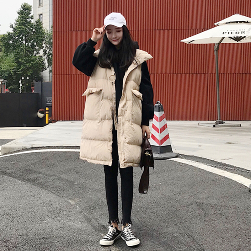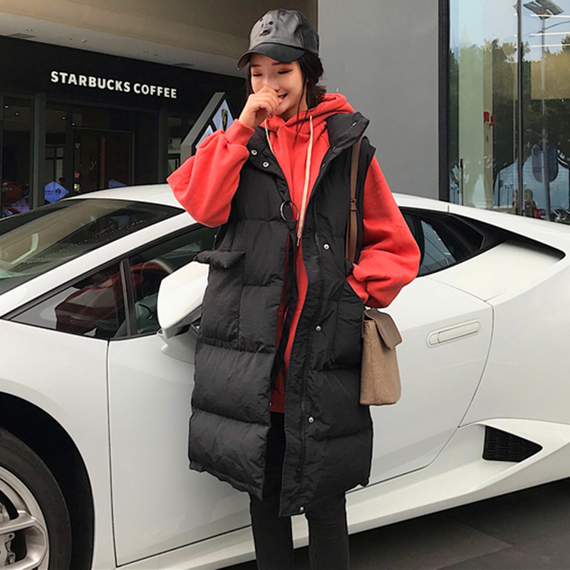 洋氣套裝女冬季2018新款寬松長袖連帽衛衣中長款坎肩棉衣馬甲外套