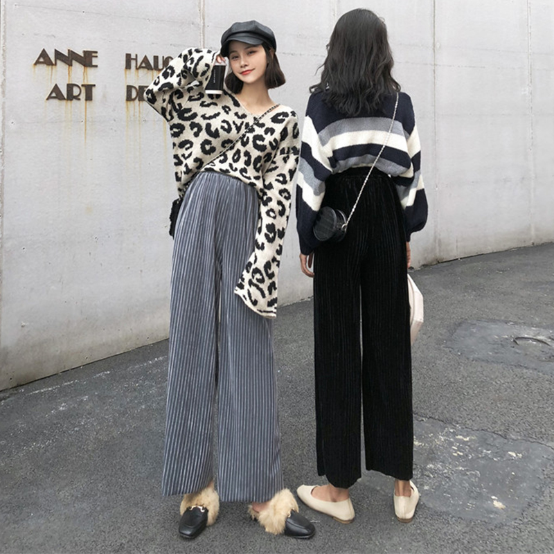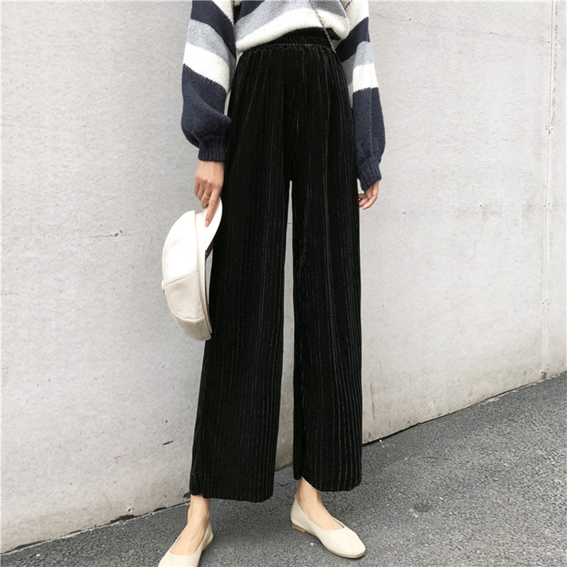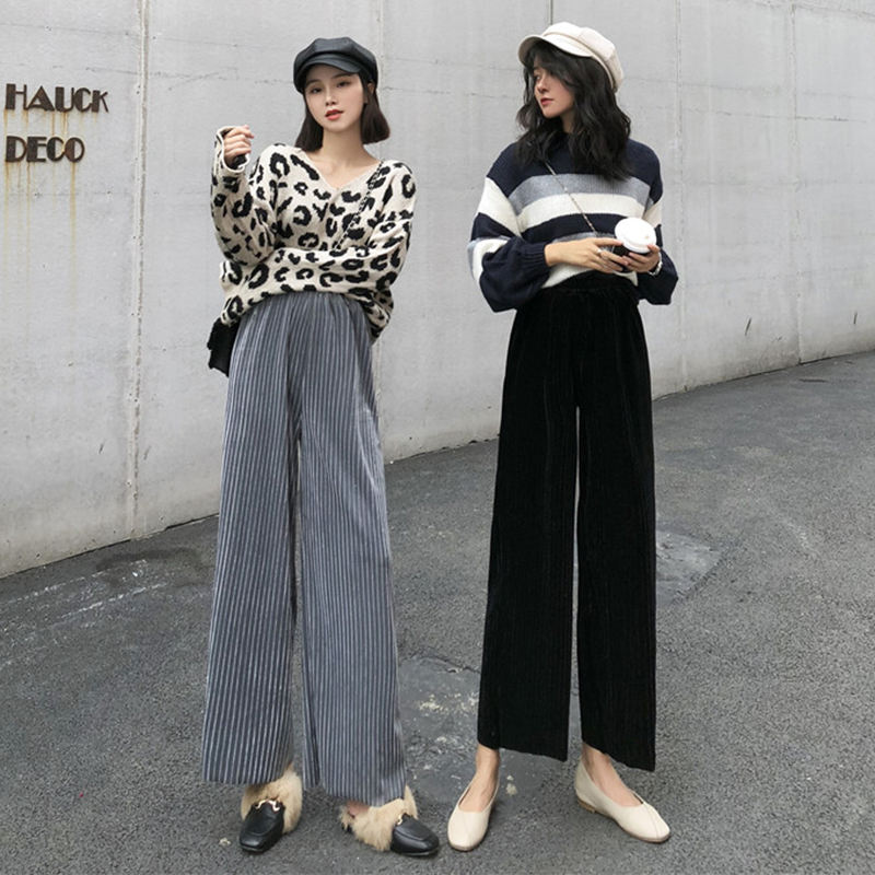 chic港風長褲子女冬裝2018新款韓版高腰顯瘦闊腿褲時尚氣質休閑褲