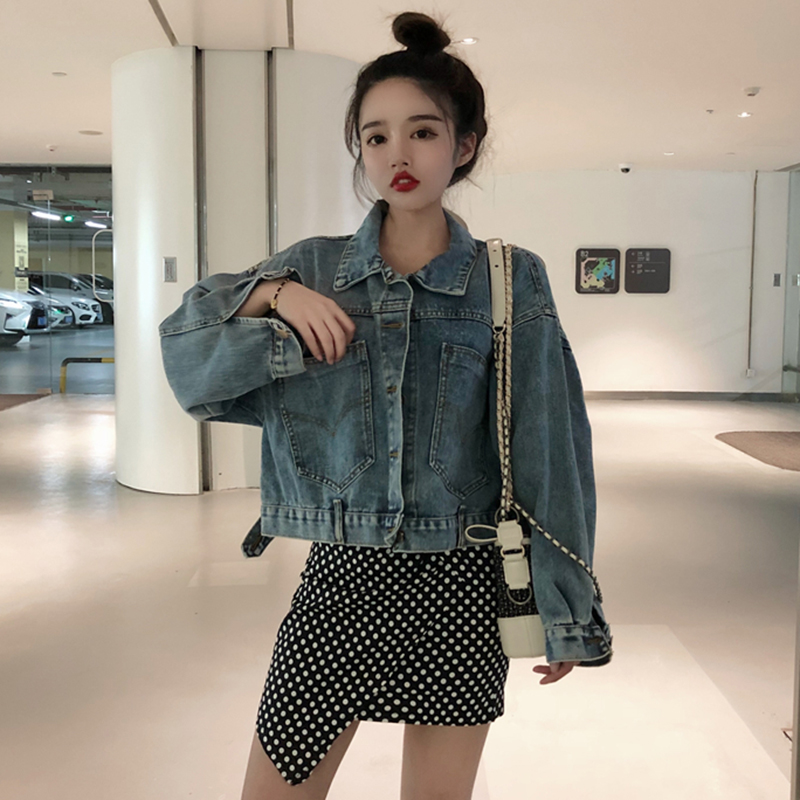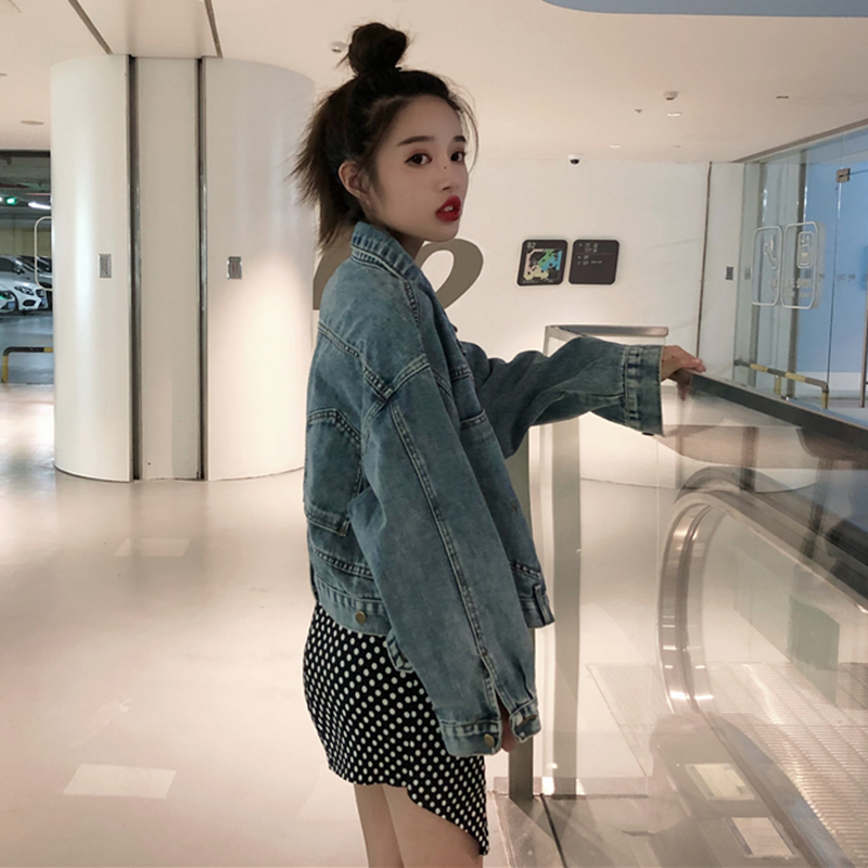 女2018秋裝新款韓版短款前后大口袋牛仔外套學生寬松長袖夾克上衣