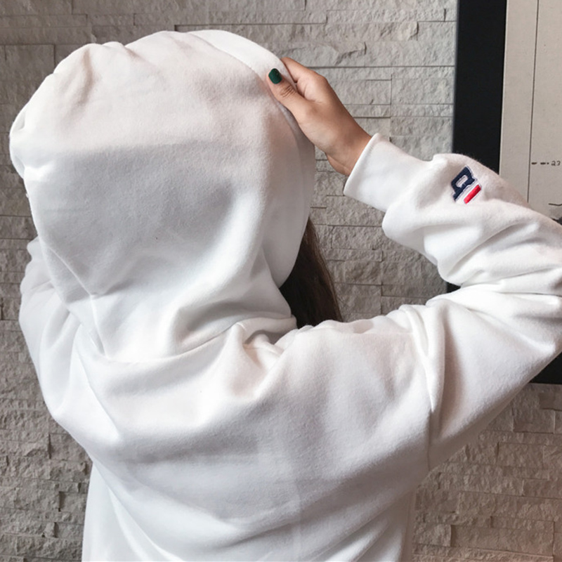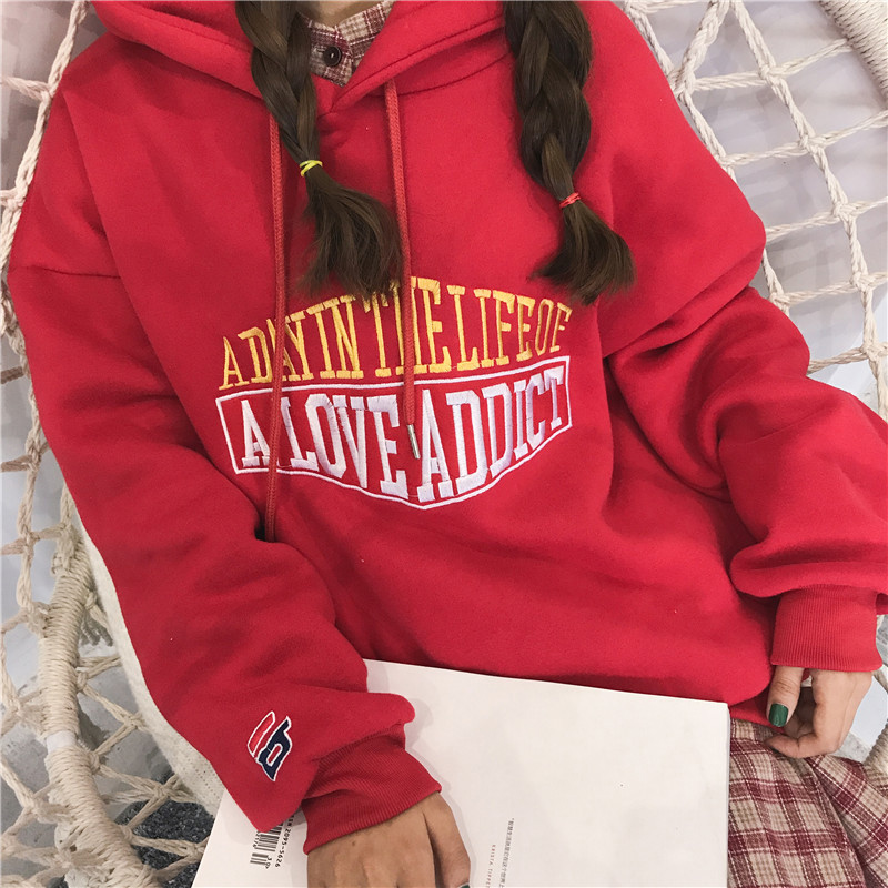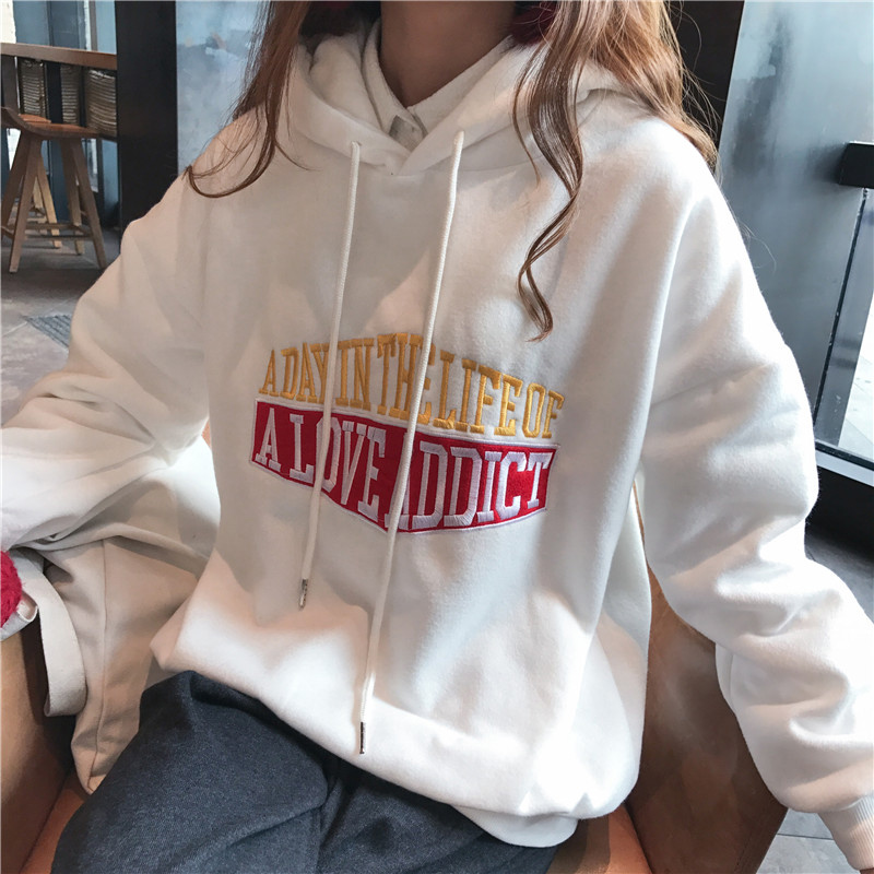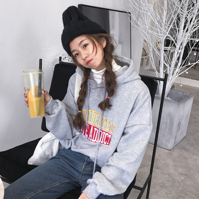 / 時尚字母刺繡連帽衛衣秋冬女裝新款學生加絨外套慵懶寬松長袖上衣