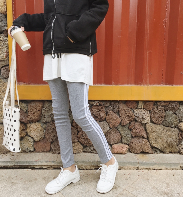 / 韓國秋冬款時尚百搭三道扛休閑褲長褲修身顯瘦打底褲女外穿
