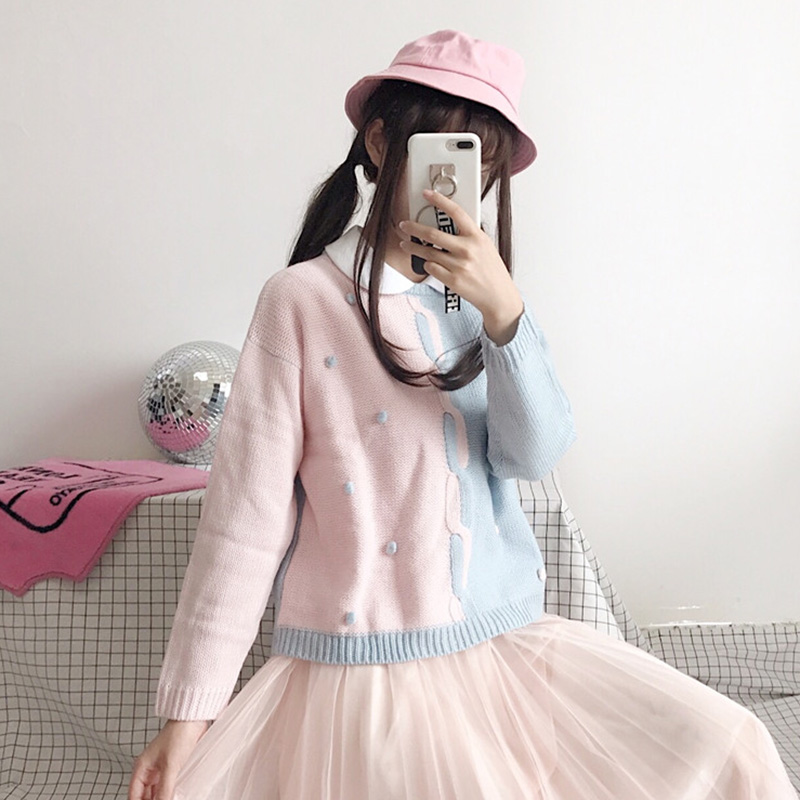 / 秋冬女裝2018新款學院風顯瘦麻花毛衣可愛俏皮拼色打底針織衫上衣
