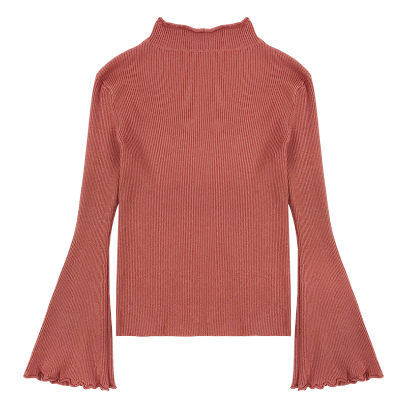 早秋2018新款女裝復古氣質半高領針織上衣修身顯瘦喇叭長袖打底衫