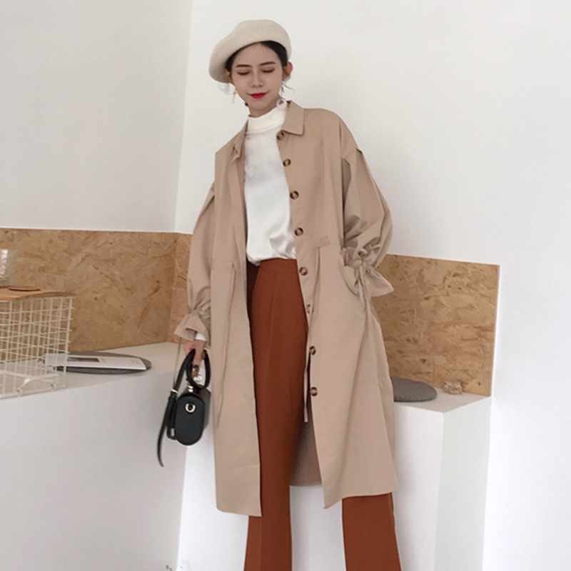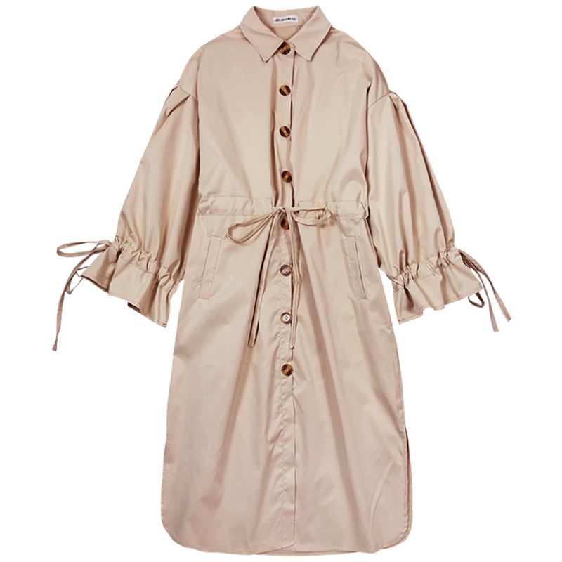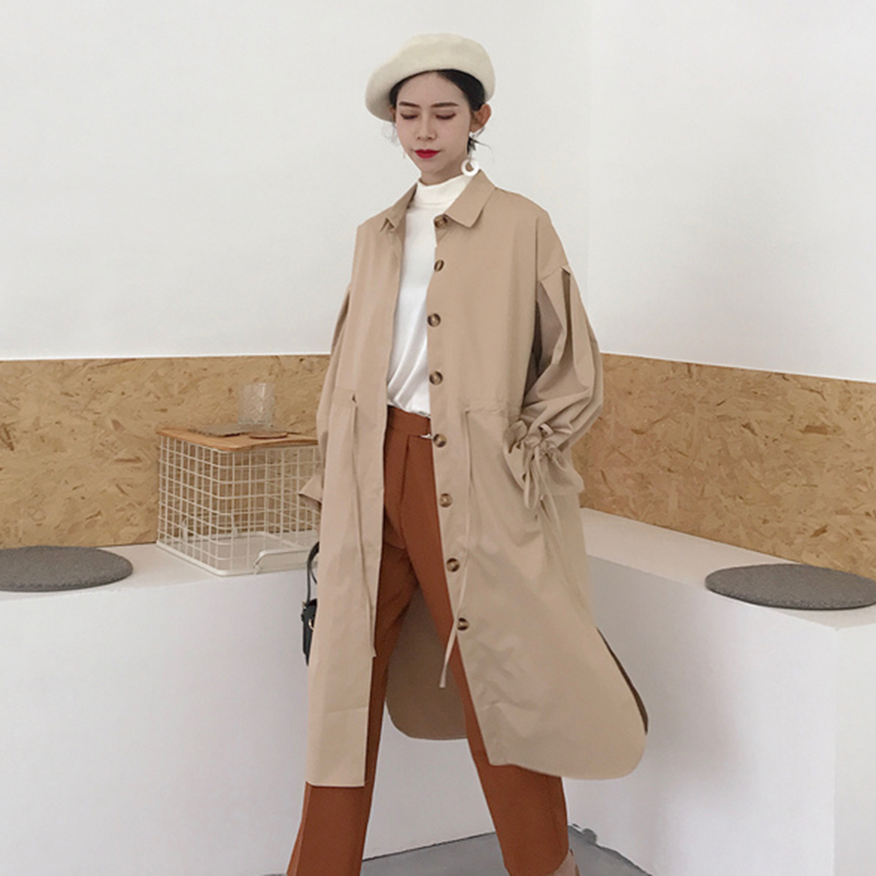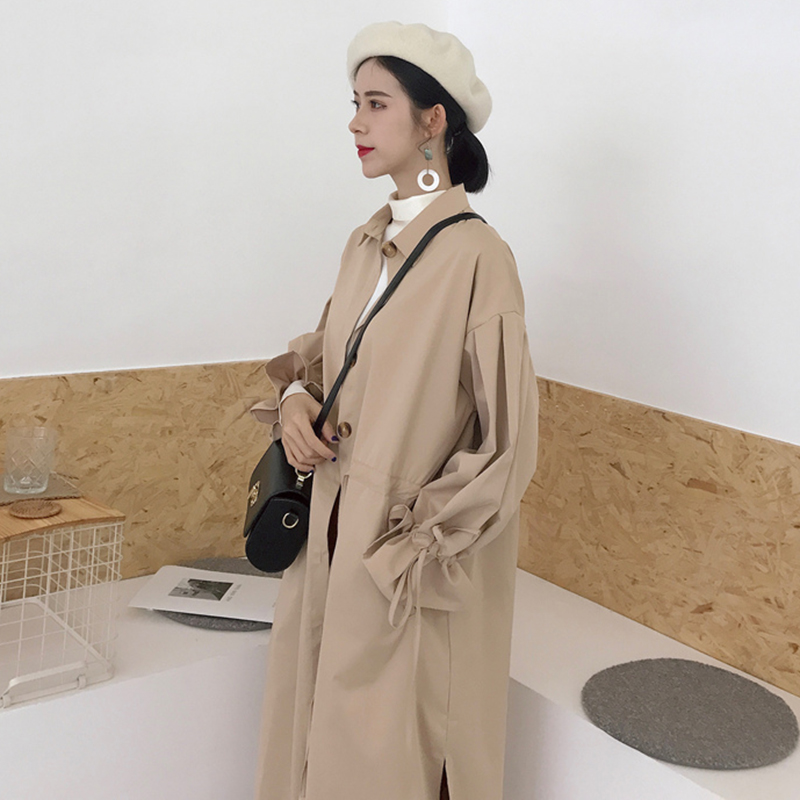 / 卡其色風衣女2018春秋裝收腰顯瘦過膝中長款韓版裙擺風衣外套chic