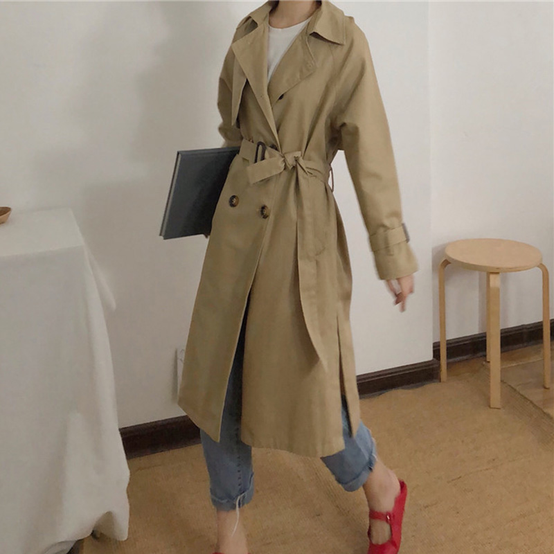 秋裝女2018新款氣質收腰系帶開叉風衣韓版休閑寬松中長外套上衣潮