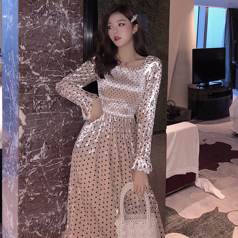 女神套裝秋冬2018新款寬松毛絨背心馬甲時尚波點長款絲絨連衣裙子
