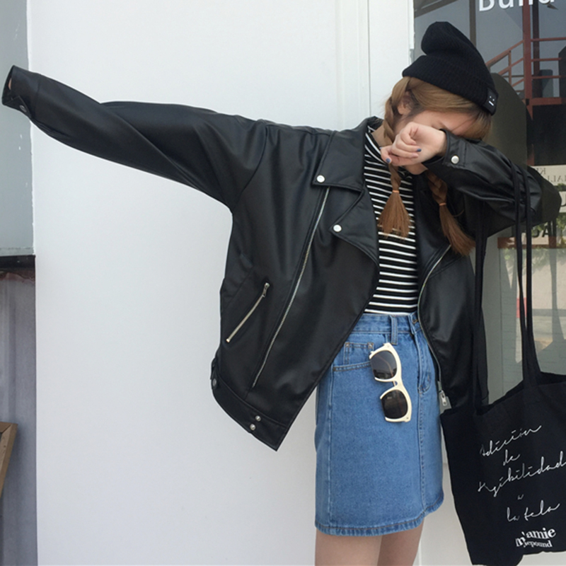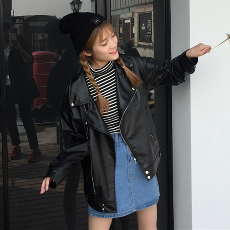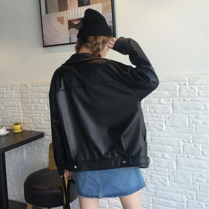 秋裝女新款韓版短款寬松pu皮皮衣機車服學生休閑夾克上衣開衫外套