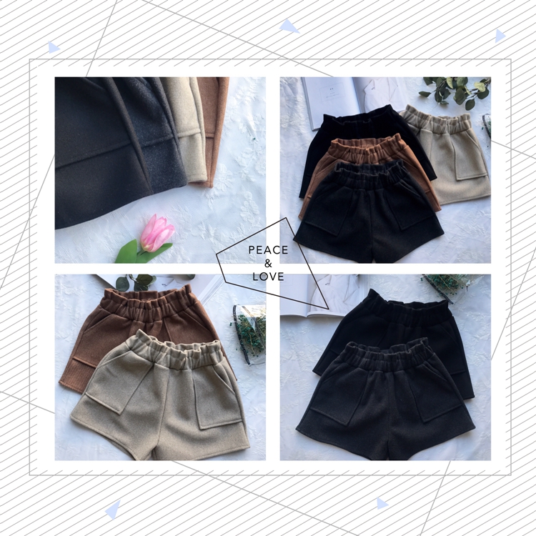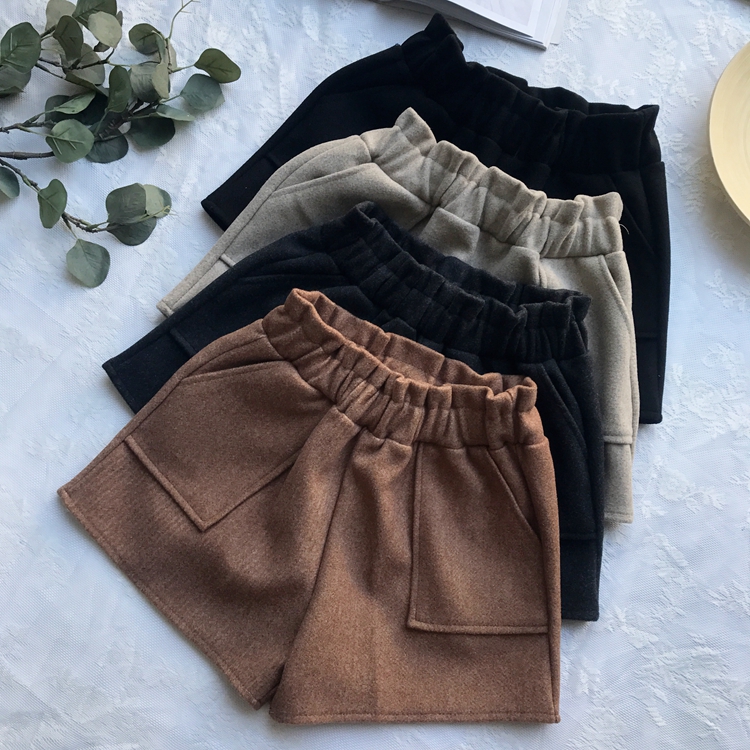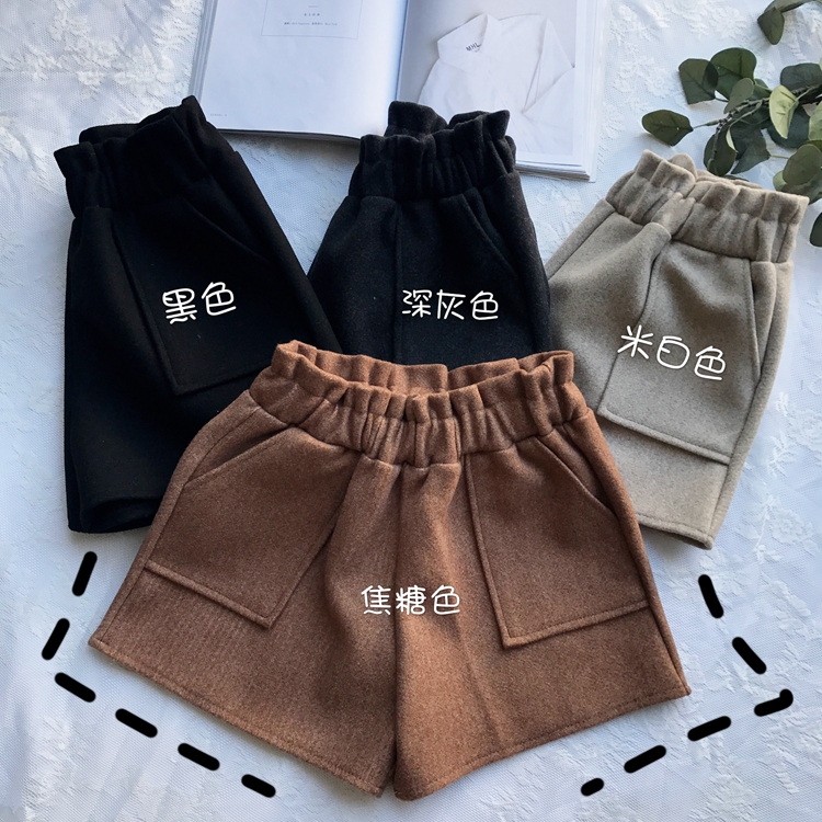 / 秋冬女裝韓版寬松高腰闊腿褲百搭直筒褲毛呢褲休閑褲短褲學生褲子