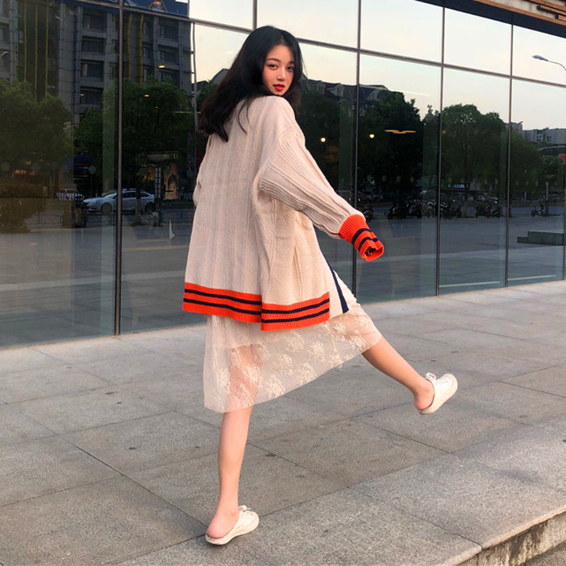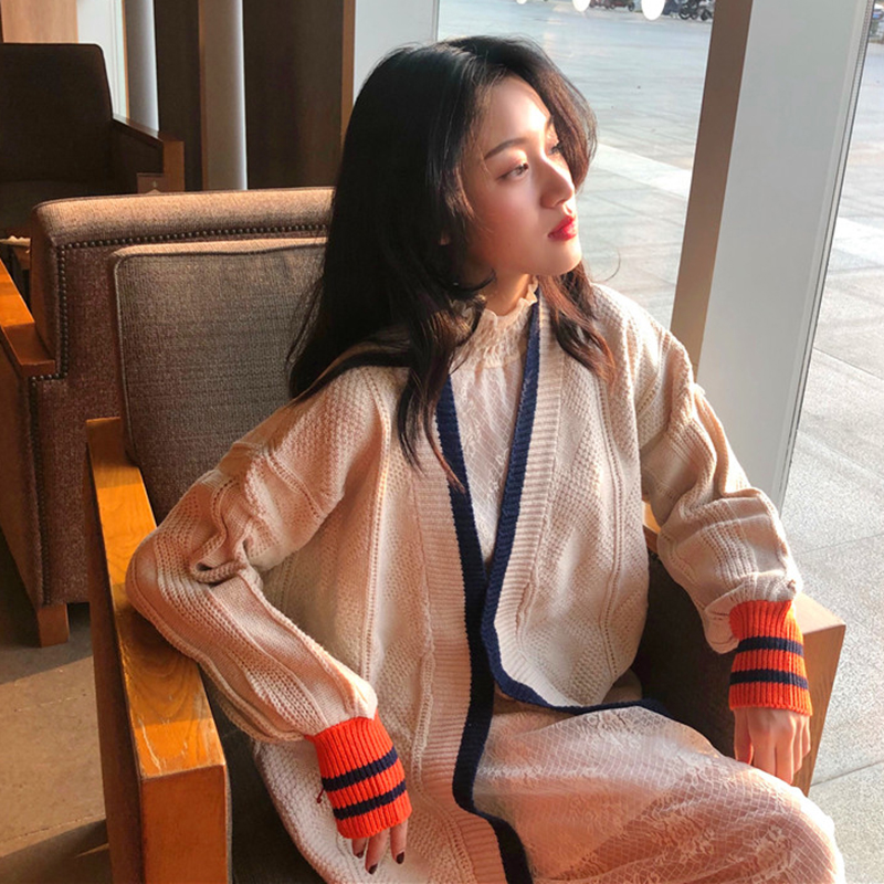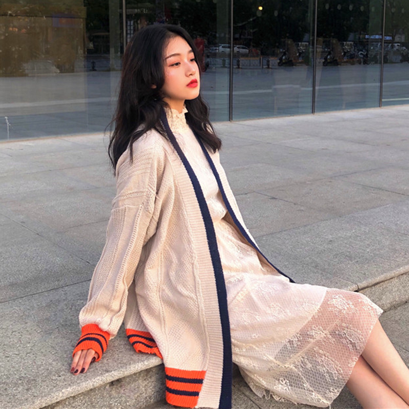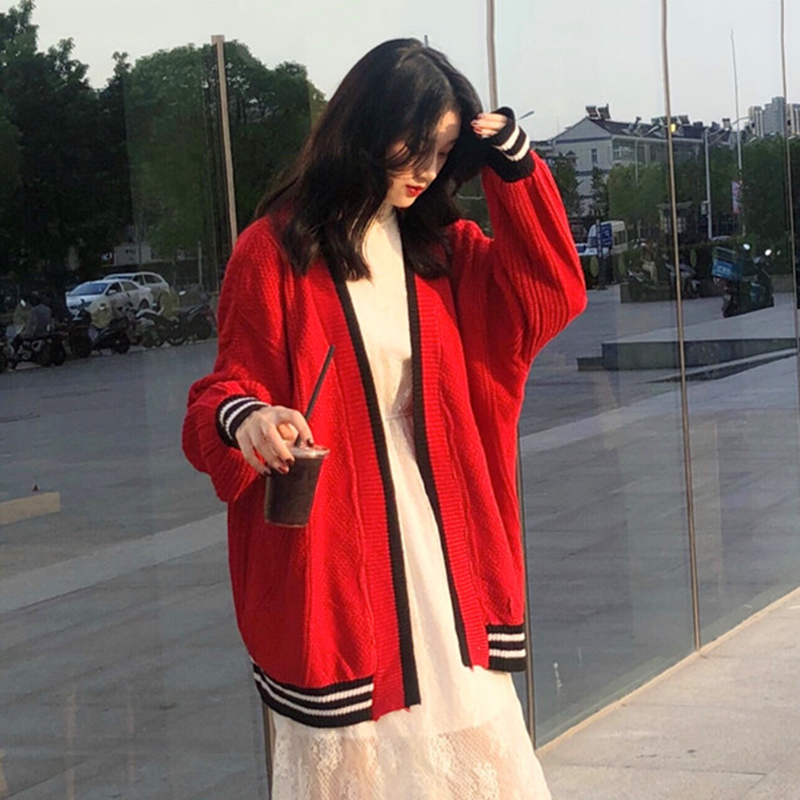 慵懶風秋款毛衣女裝2018新款寬松撞色長袖針織開衫學生原宿風外套