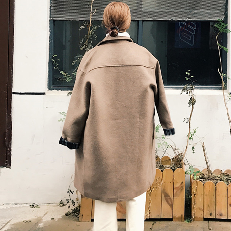 女裝秋冬2018新款復古中長款夾棉呢子大衣學生休閑寬松黑色外套潮