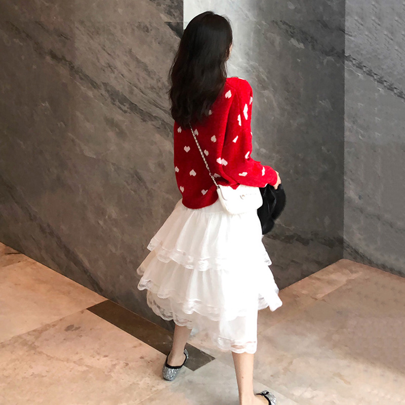 白色毛衣|紅色毛衣|絲絨波點蛋糕裙|蕾絲蛋糕裙