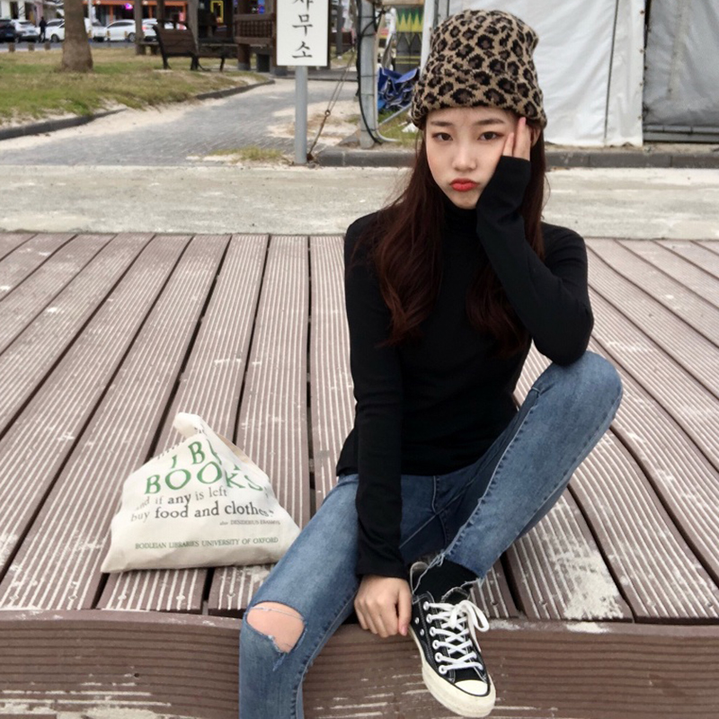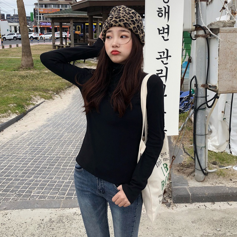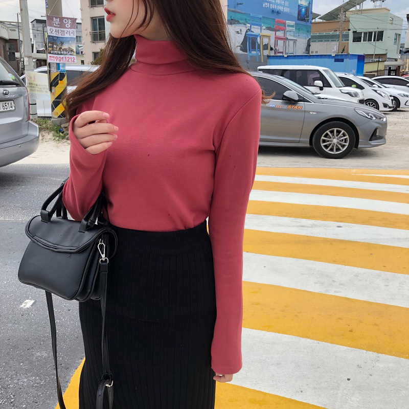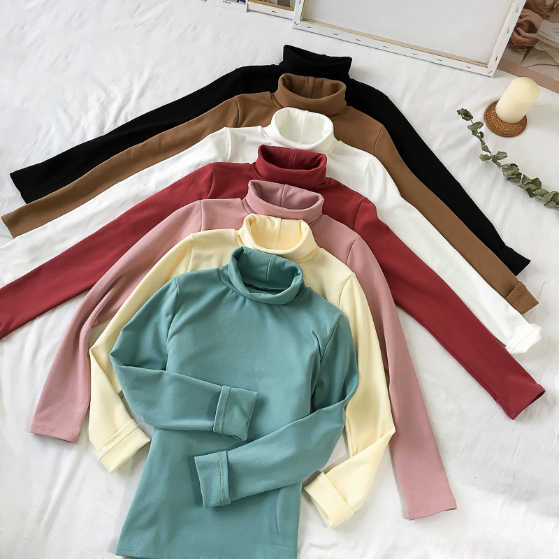 糖果色高領打底衫女秋冬裝2018新款學生韓版氣質修身顯瘦長袖T恤