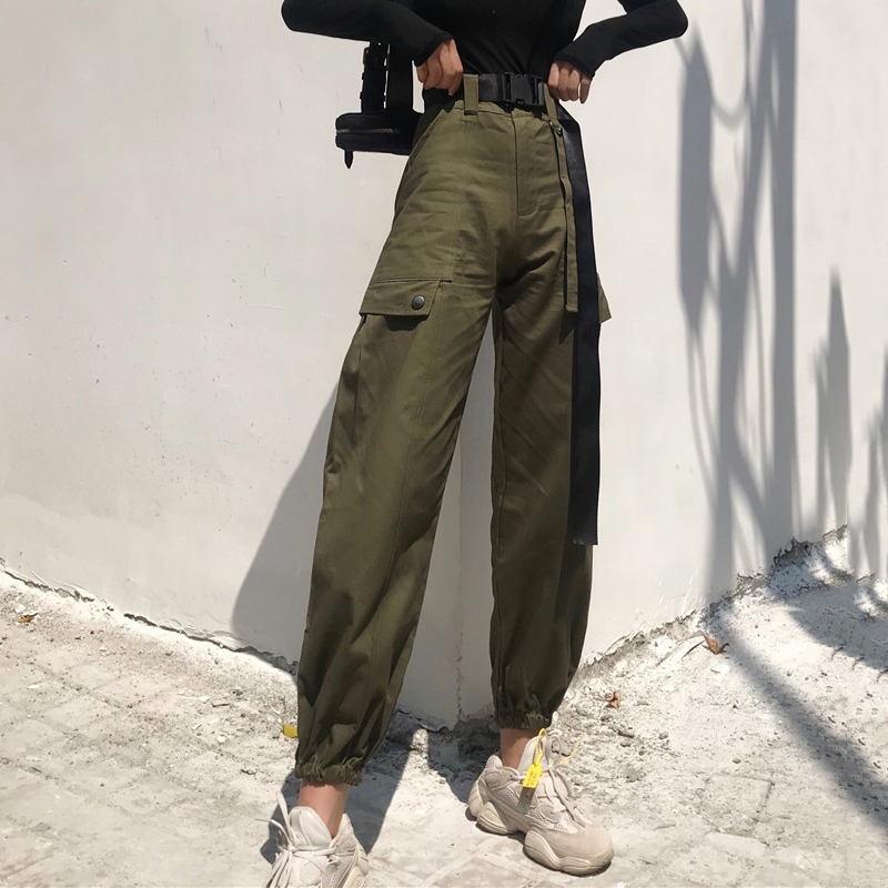 / 2018早秋新款兩件套裝港味長袖修身打底衫T恤+高腰工裝休閑哈倫褲