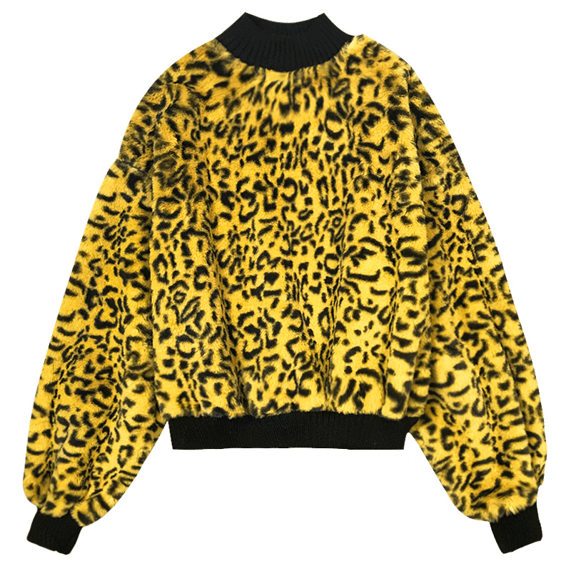 / 復古豹紋毛絨衛衣秋冬女裝新款寬松燈籠長袖外套圓領休閑短款上衣