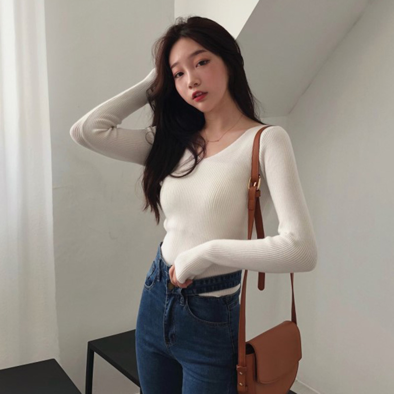打底針織衫女秋裝2018新款修身氣質V 領長袖衣服韓版顯瘦緊身上衣