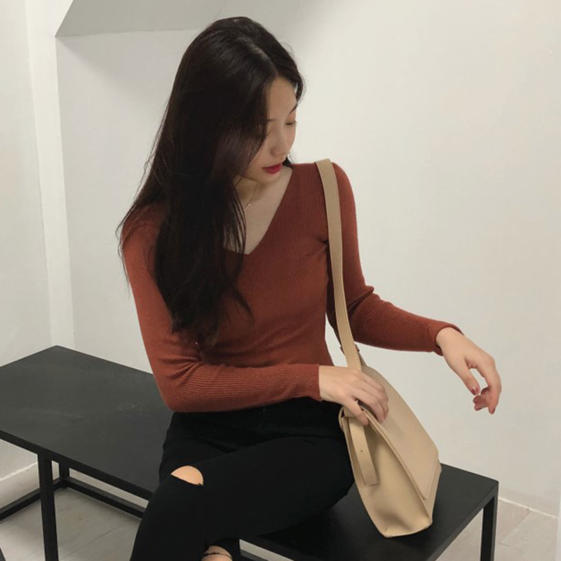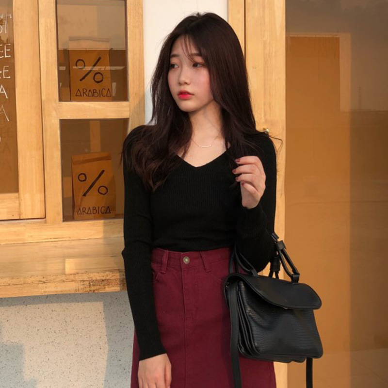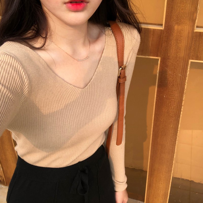 / 打底針織衫女秋裝2018新款修身氣質V 領長袖衣服韓版顯瘦緊身上衣
