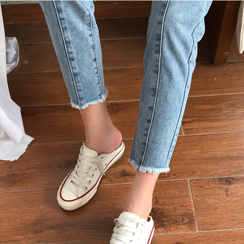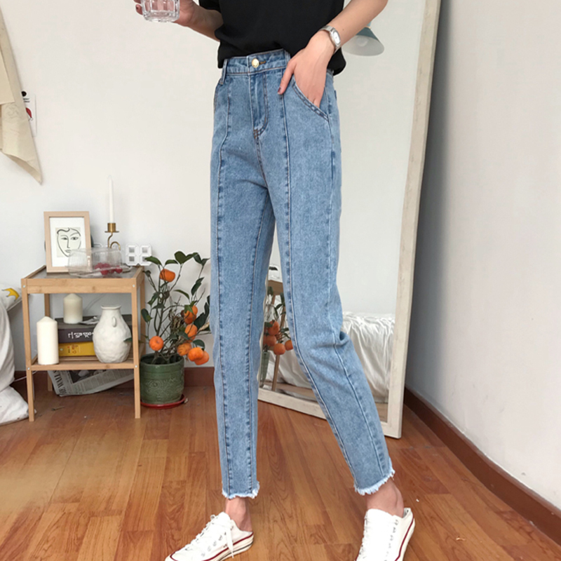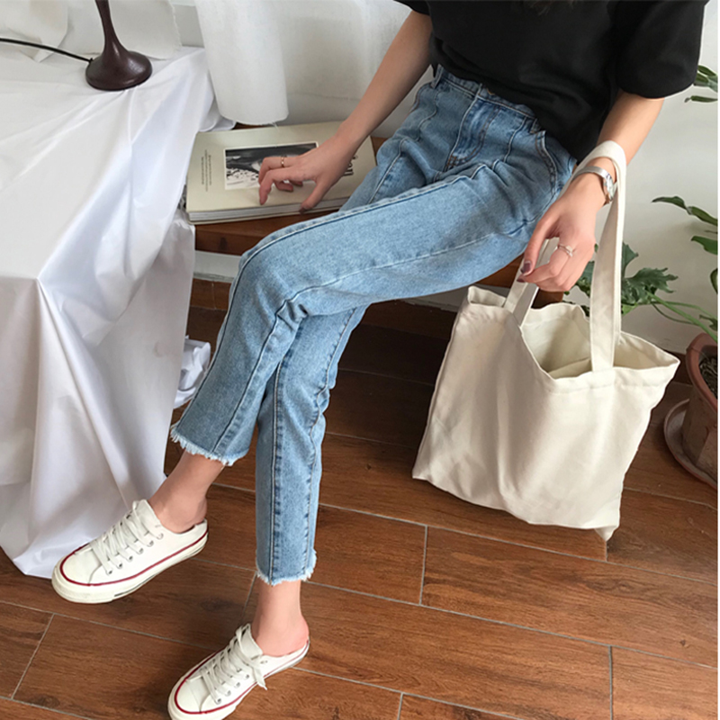 / 休閑毛邊牛仔褲女2018秋裝新款韓版修身高腰直筒褲子學生九分褲潮