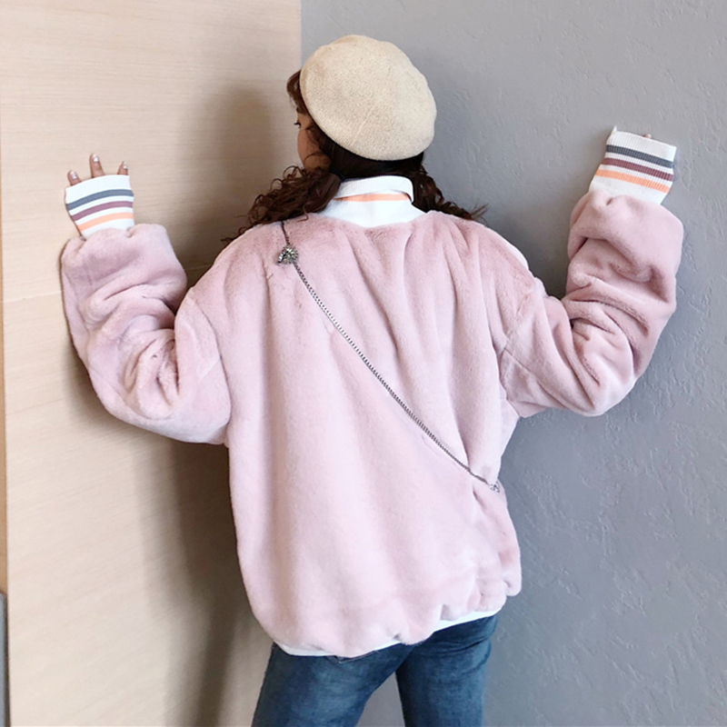/ 秋冬上衣女新款半高領寬松加絨保暖外套套頭長袖毛絨衛衣+小包包