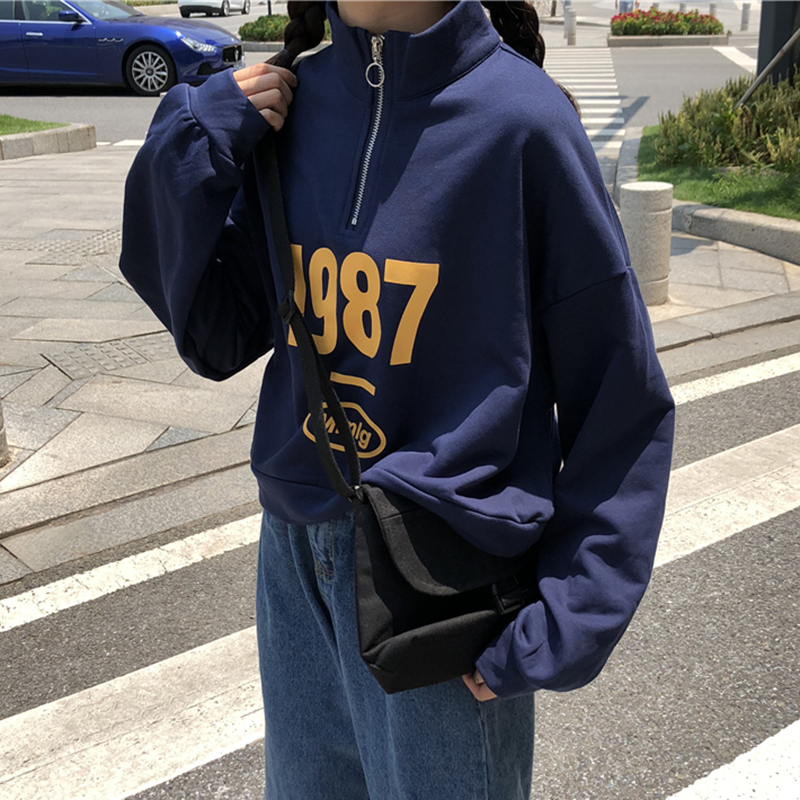 / 運動休閑長袖印花衛衣秋裝女2018新款韓范港風學生時尚寬松短上衣