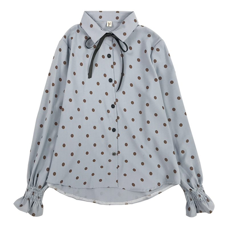蝴蝶結復古波點襯衫女秋裝新款寬松荷葉長袖襯衣學生百搭休閑上衣