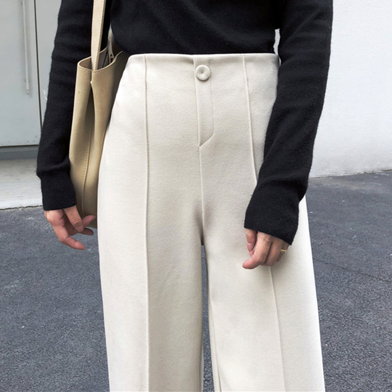 / 秋冬女裝2018新款復古風高腰顯瘦開叉休閑褲黑色寬松闊腿九分褲子