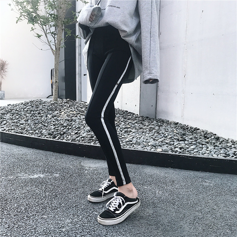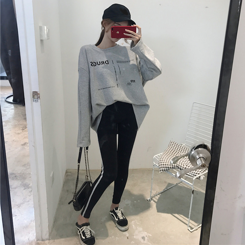/ 洋氣套裝秋冬女2018新款心機露背長袖衛衣高腰側條紋緊身打底長褲
