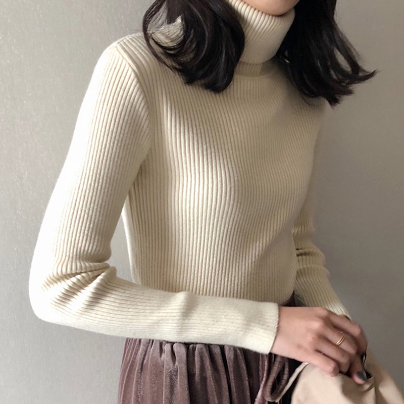 秋冬女2018新款韓版基礎款復古純色高領修身顯瘦長袖打底針織衫