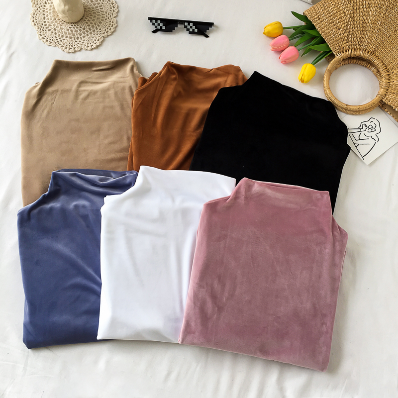 / 簡約純色半高領打底衫秋季女裝2018新款復古絲絨上衣學生長袖T恤