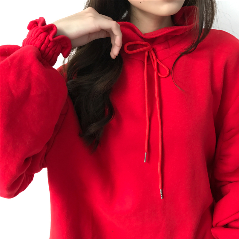 / 中長款立領系帶衛衣裙女秋冬裝2018新款韓版寬松泡泡長袖連衣裙子