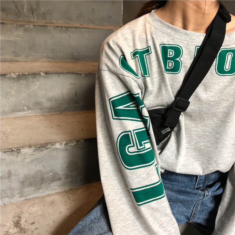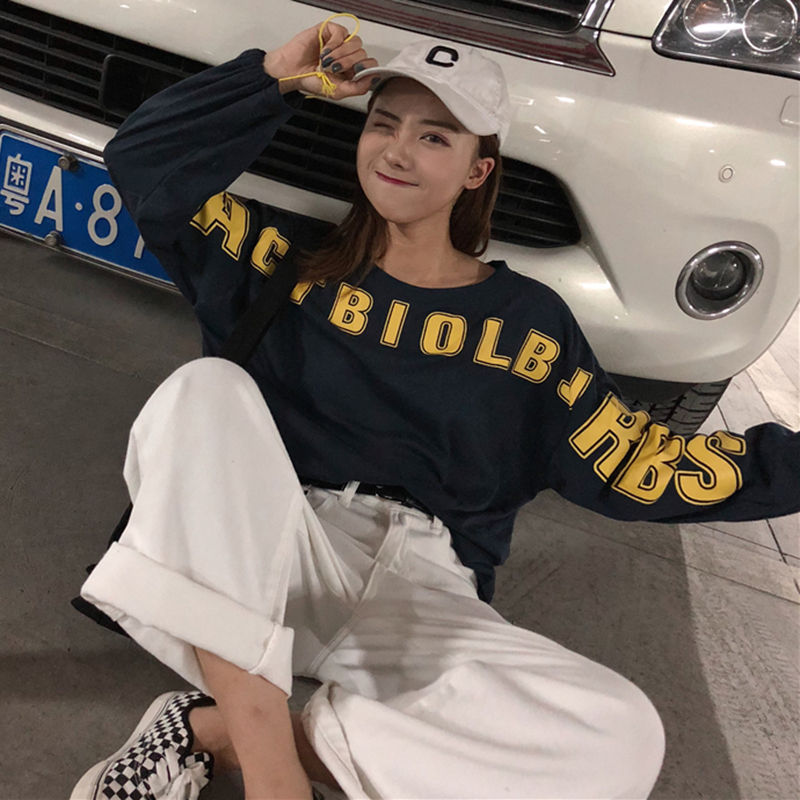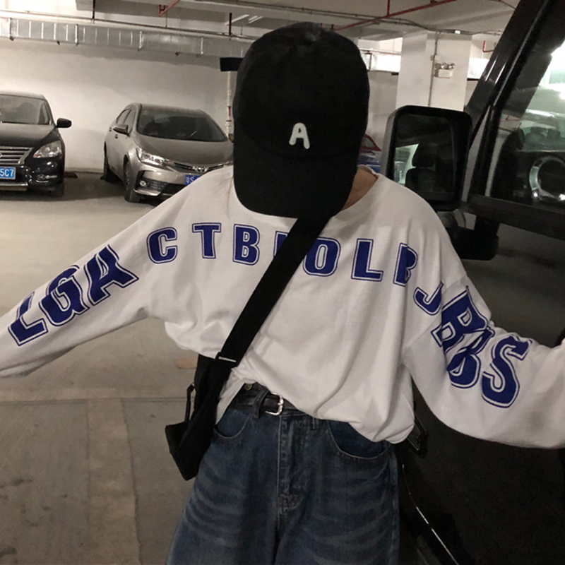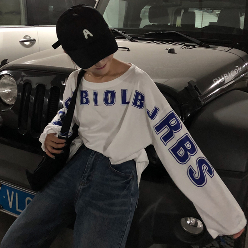 / 潮流女裝秋季新款韓版寬松個性字母印花長袖T恤學生慵懶休閑上衣