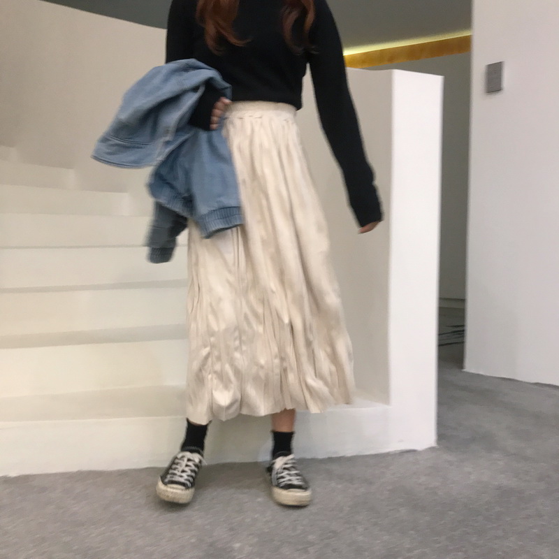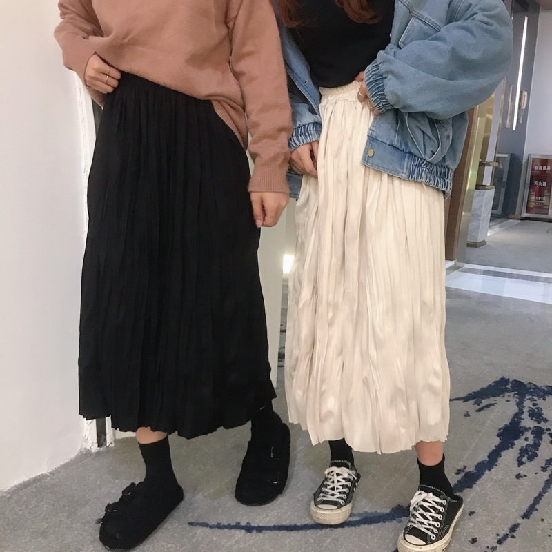 / 秋冬韓版chic氣質寬松百搭百褶裙半身裙高腰包臀裙長裙學生裙子女