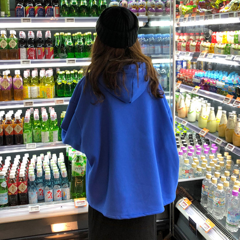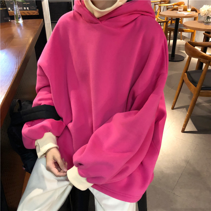 / 慵懶風撞色假兩件連帽衛衣秋冬2018新款女裝韓版寬松加絨外套上衣