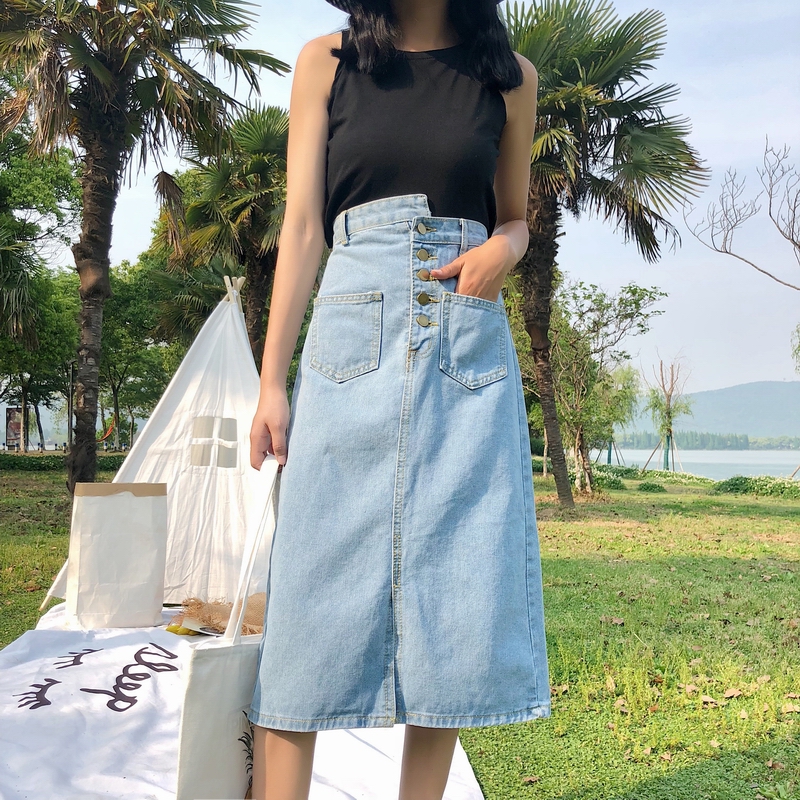 / 夏季女裝新款韓版修身高腰包臀半身裙學生中長款開叉牛仔A字裙潮