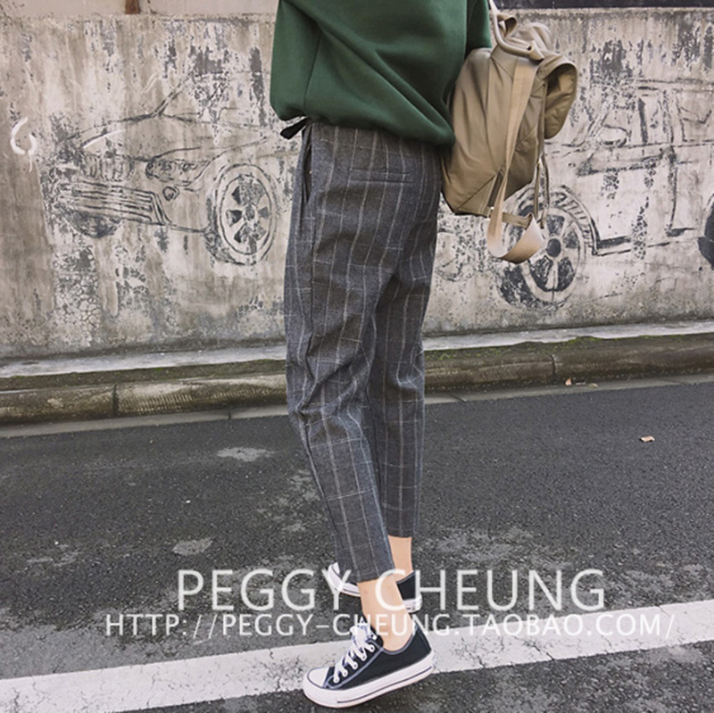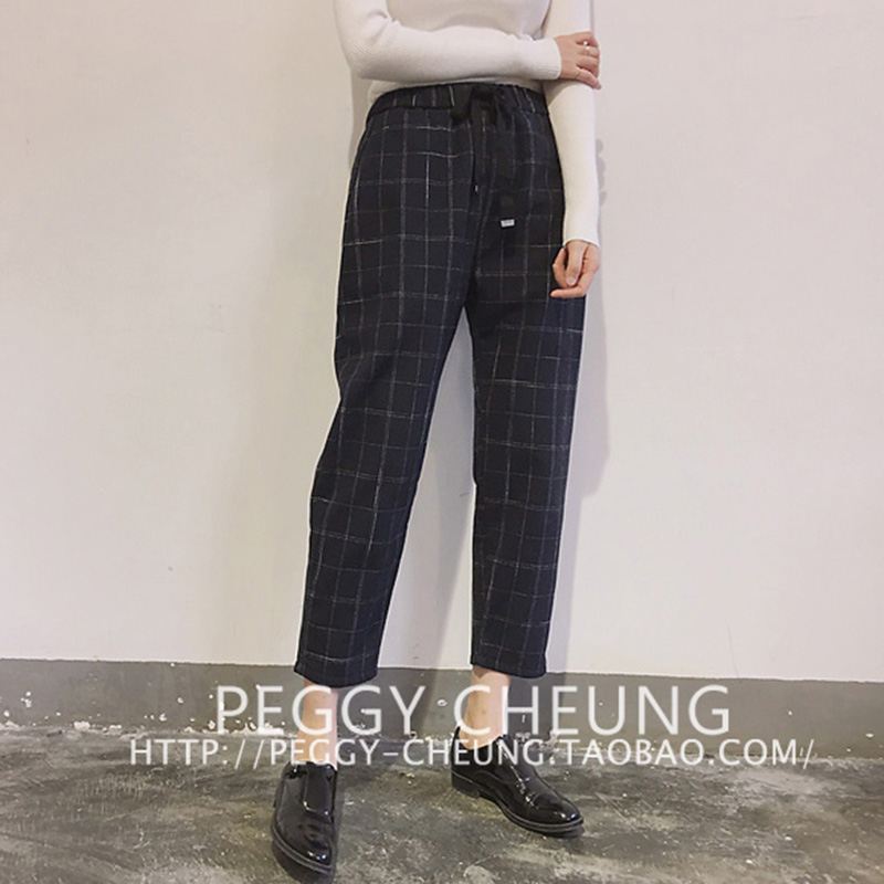 初秋裝女2018新款女裝學院風格子百搭寬松顯瘦學生哈倫褲休閑褲子