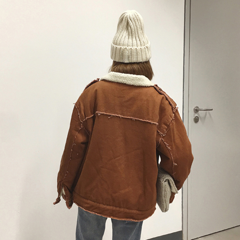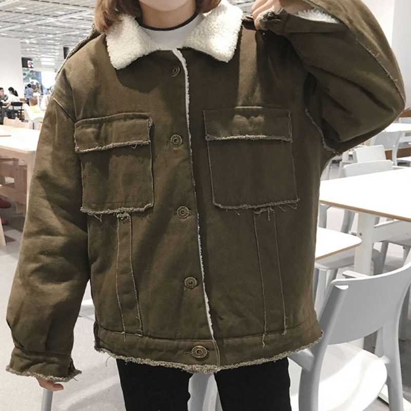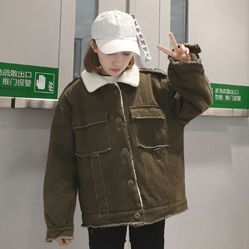 秋冬羊羔毛外套2018新款女裝復古港風毛邊工裝夾克寬松棉服上衣潮