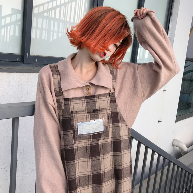 / 秋裝女2018新款韓版chic學生寬松格子毛呢背帶裙時尚休閑中長裙子