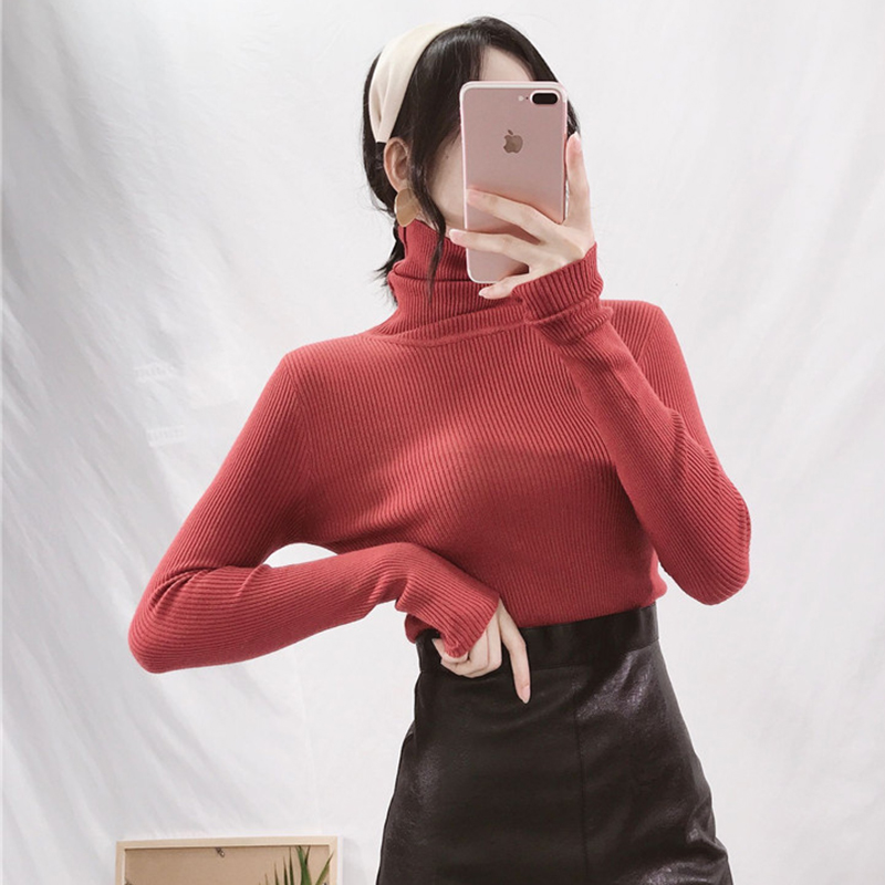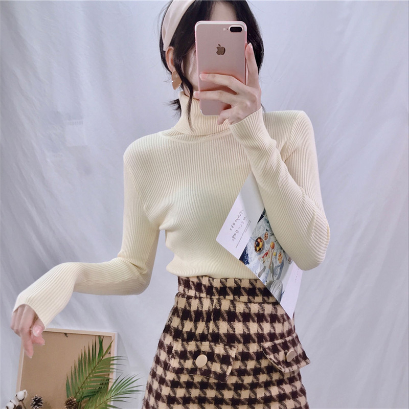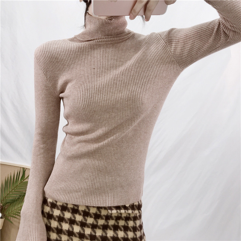 緊身毛衣女秋冬2018新款女裝高領上衣學生百搭修身長袖打底針織衫