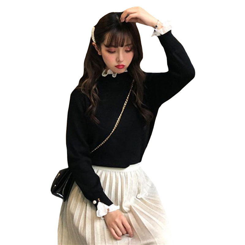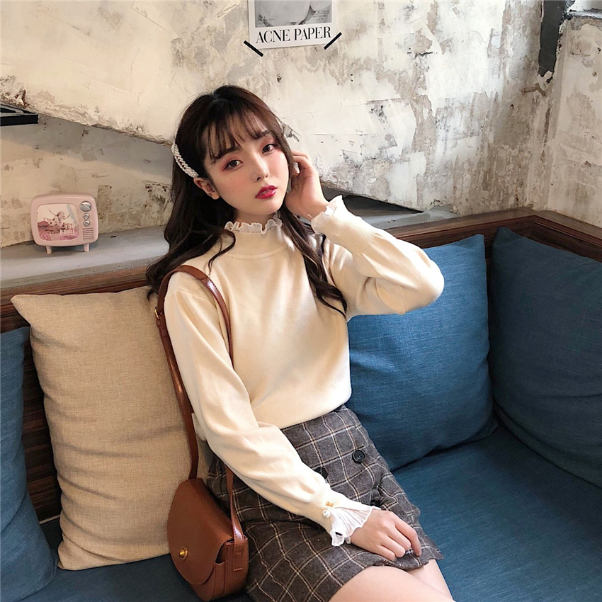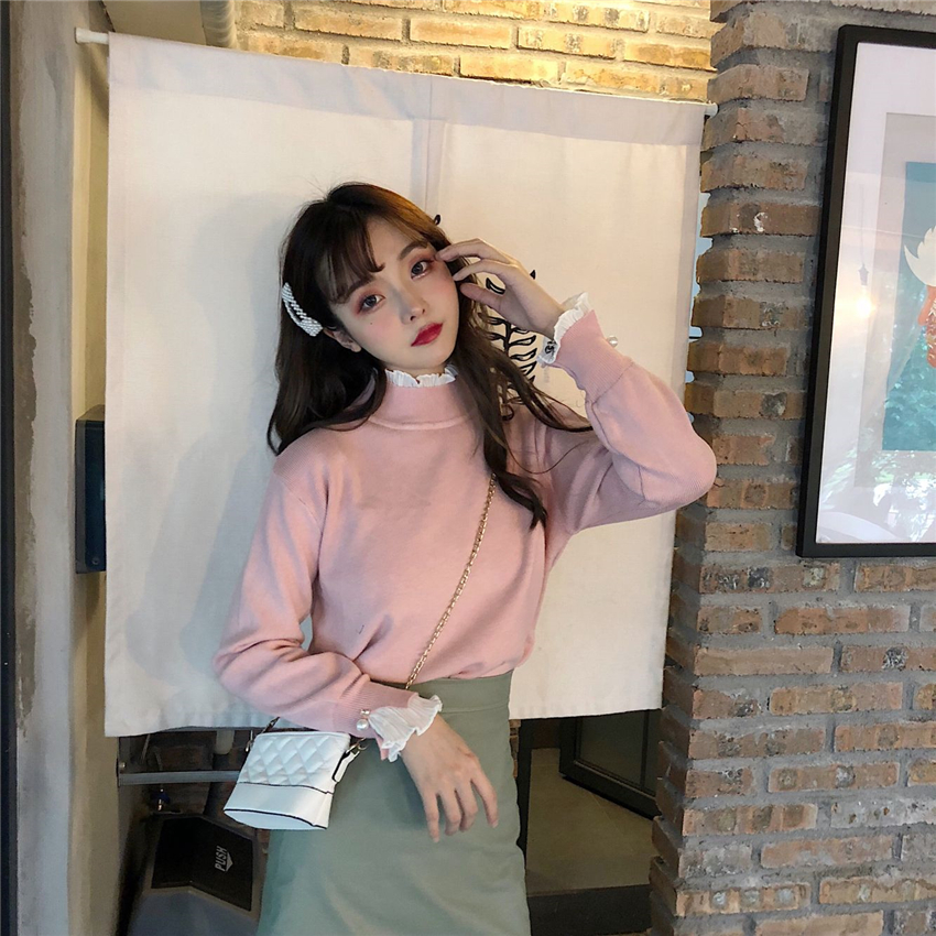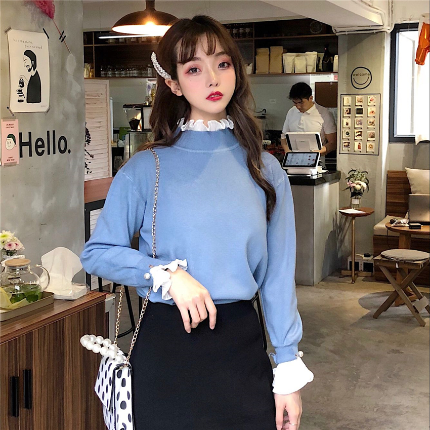 可可里小姐~韓版褶皺荷葉邊甜美假兩件打底花邊針織毛衣