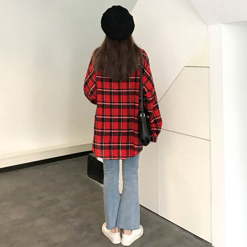 / 襯衣2018新款黃紅色格子襯衫外套女秋原宿polo衫女可愛日系韓上衣