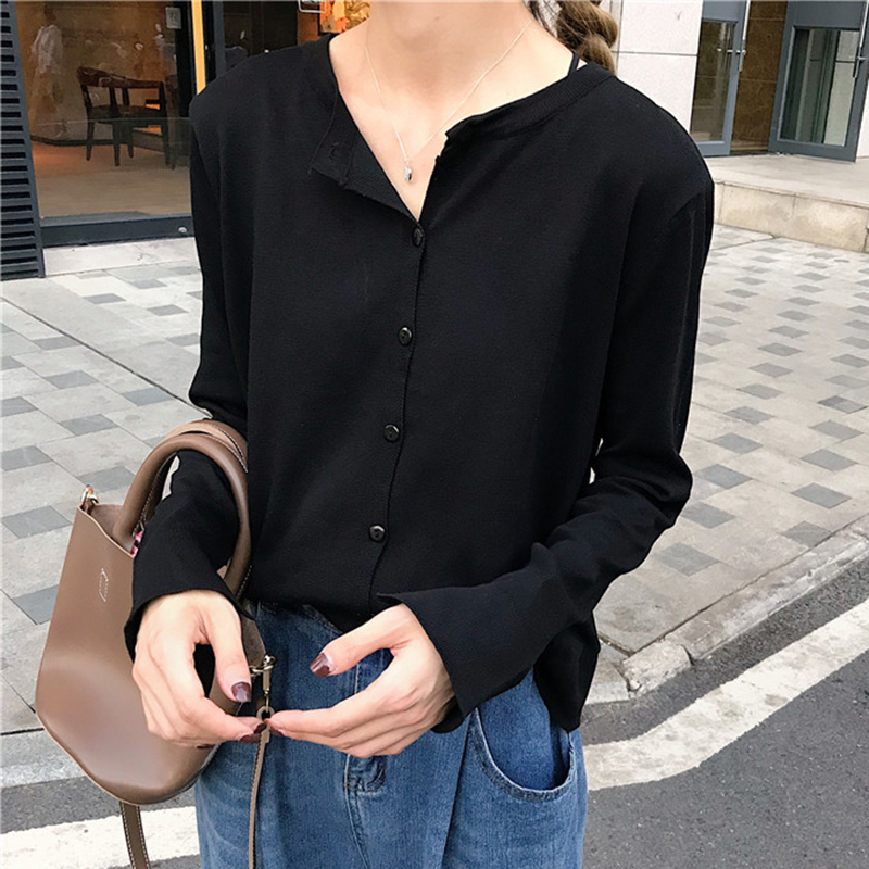 / 針織開衫休閑小外套女小清新 秋季 女套 百搭藍色上衣女秋2018新