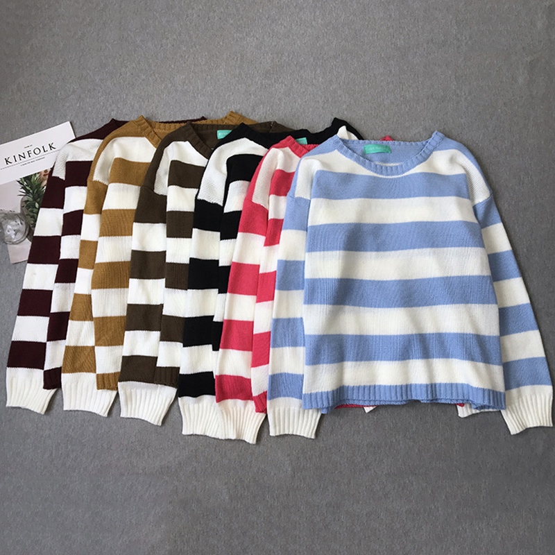 / 大毛衣女裝秋2018新款條紋寬松套頭針織衫韓版學生毛線衣慵懶外套